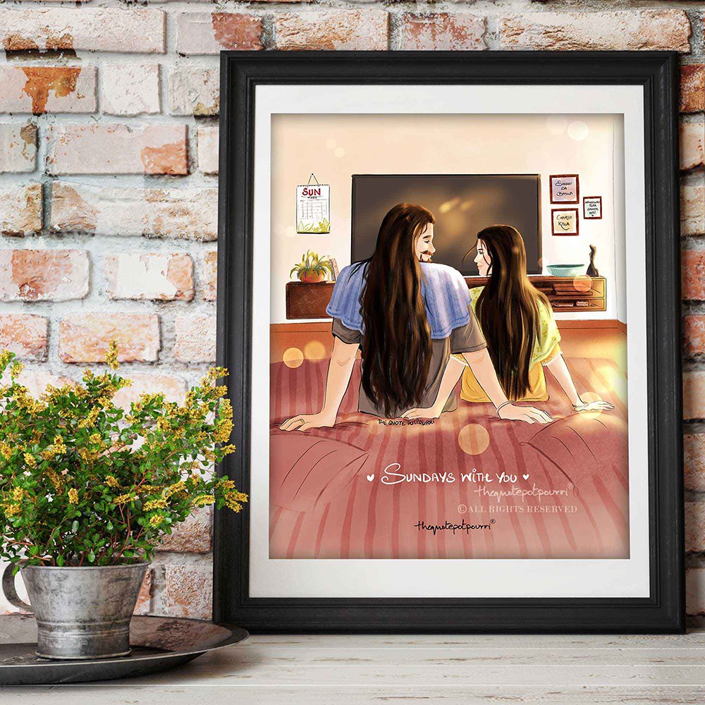 Ans- Artworks can be personalised with names, quotes or wordings. Drawings on the artwork cannot be altered. Custom sizes can be done on extra charges.