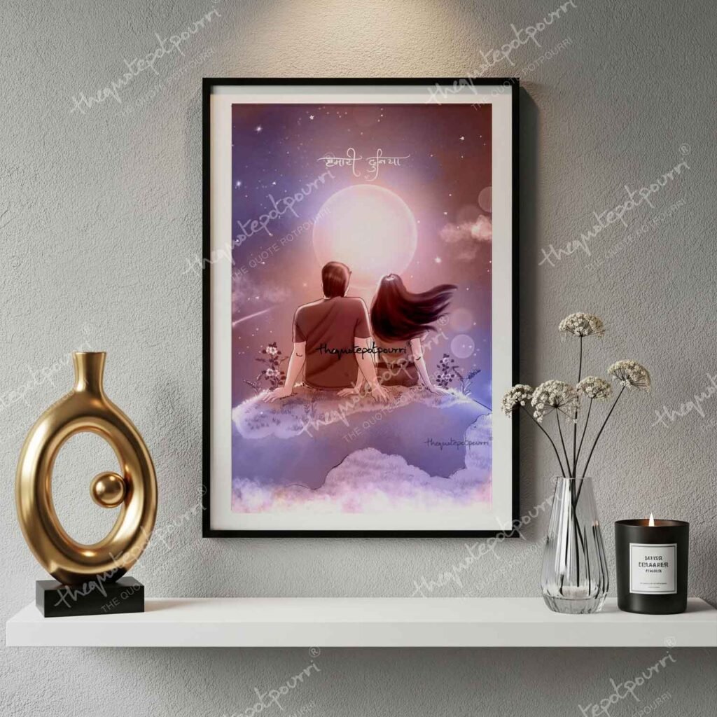 This artwork was created keeping in mind a special gift for your spouse. Makes a great unique selection of Gifts for birthdays, Anniversaries and Weddings.