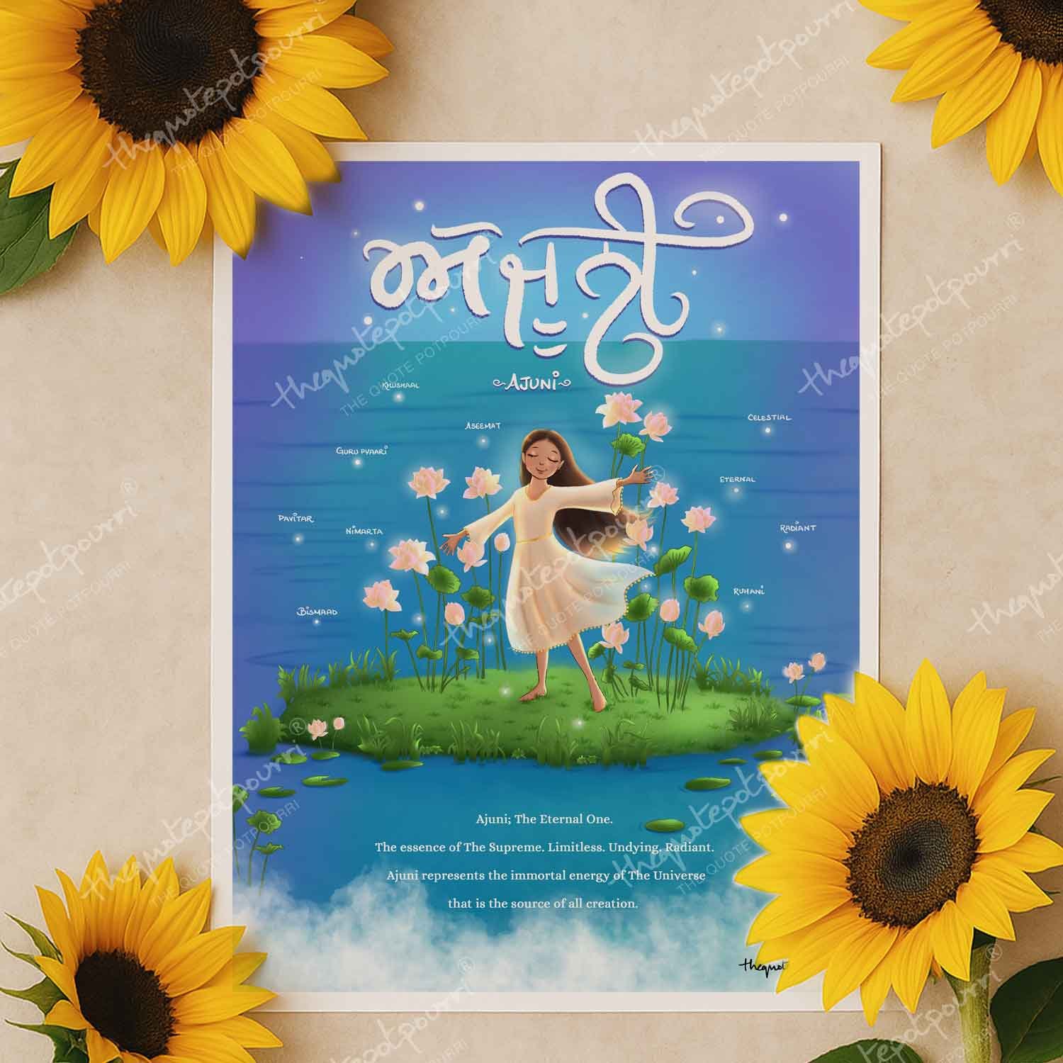 Ajooni / Ajuni | Arth Artwork | Punjabi Kid | Sikh art | Little Kaur | Unique Gifts | Kaur | Sikh Girl | Custom Name Art