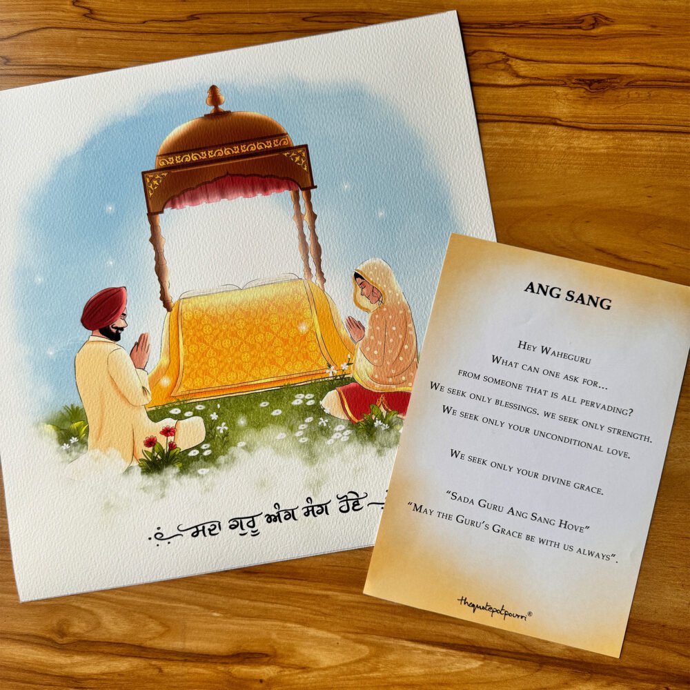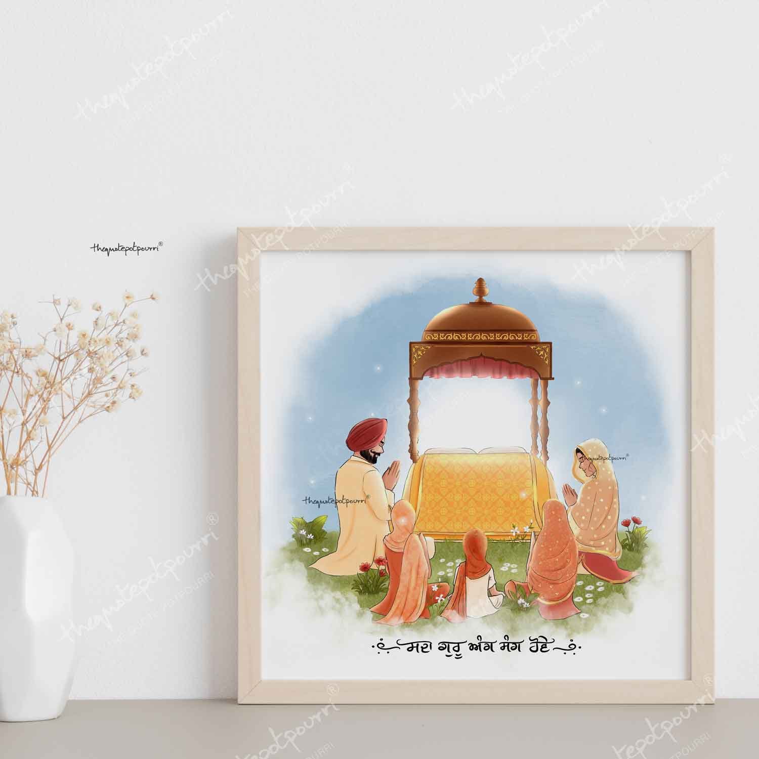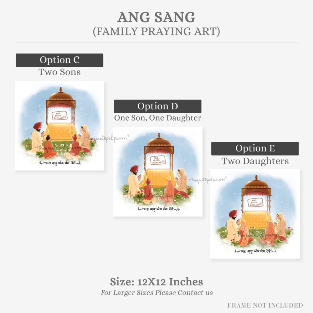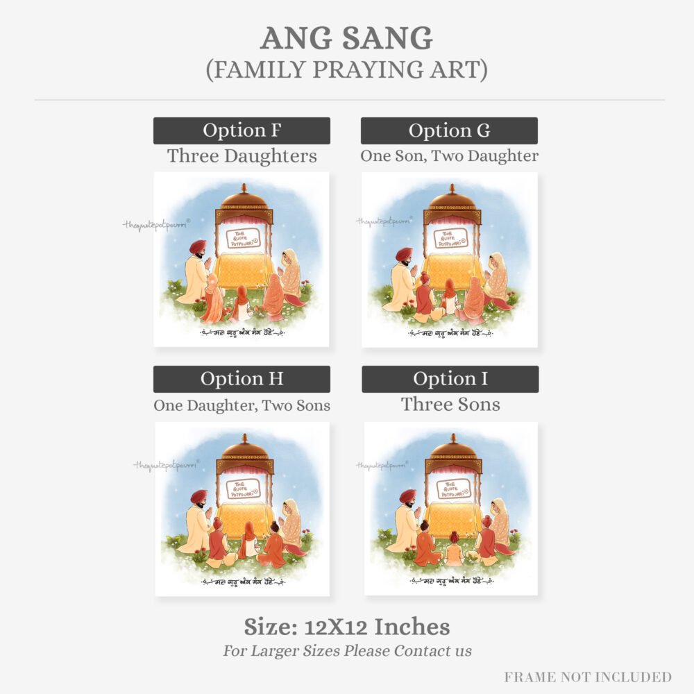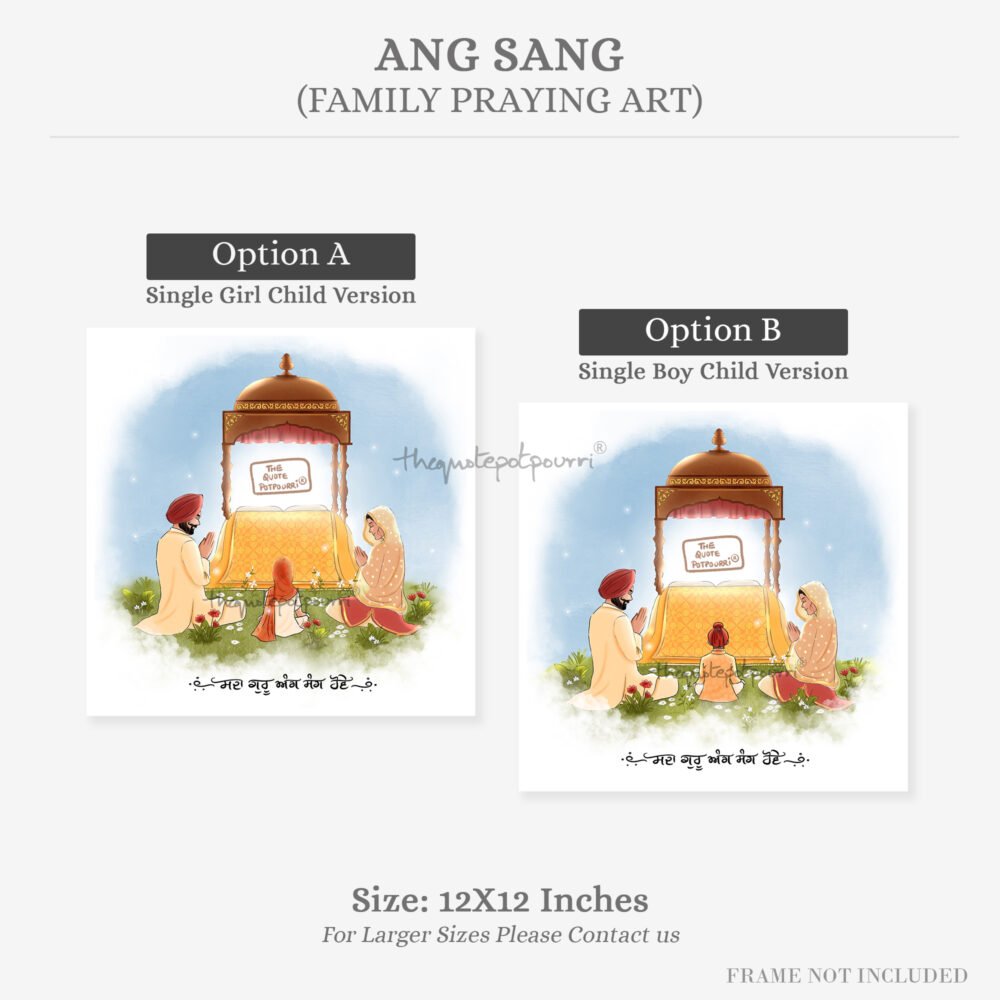 Ang Sang | Family Praying Art | Guru Ang Sang | Punjabi kids | Sikh art | Punjabi Art | Unique gifts | Singh | Kaur | Sikh Couple | Sikh Family Art
