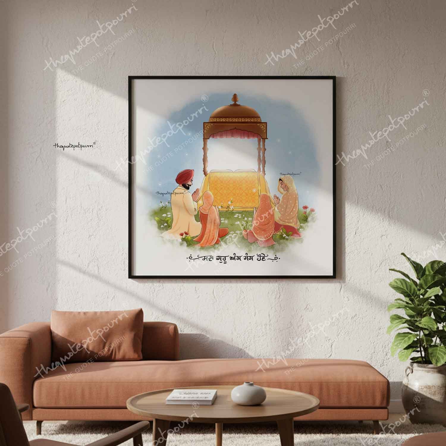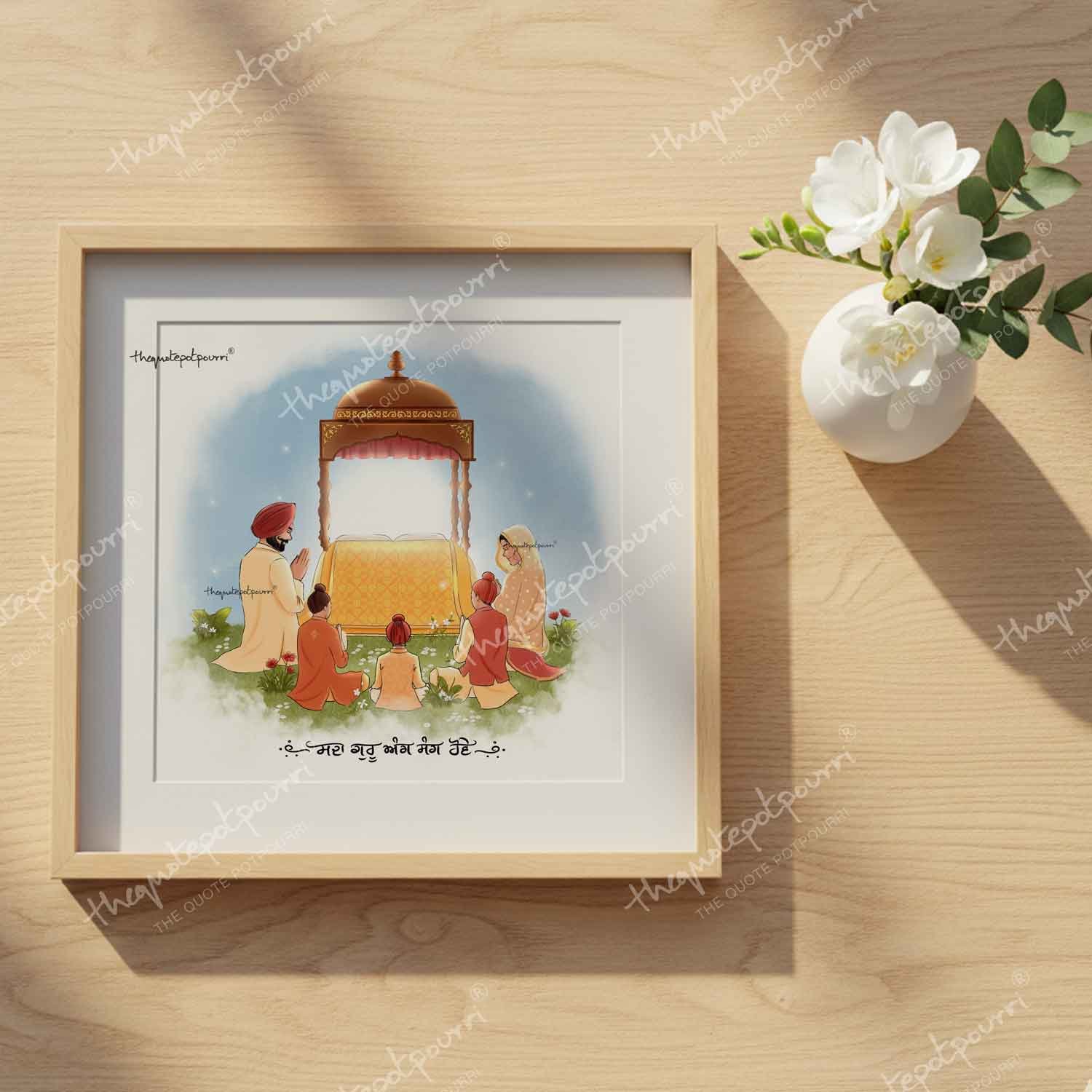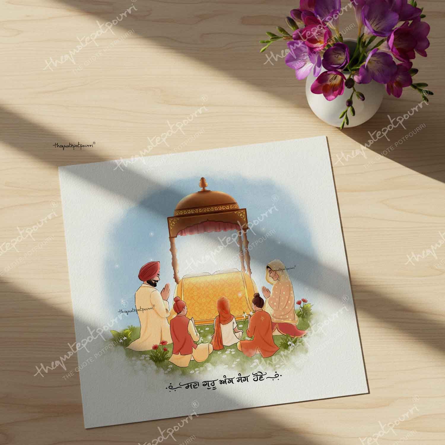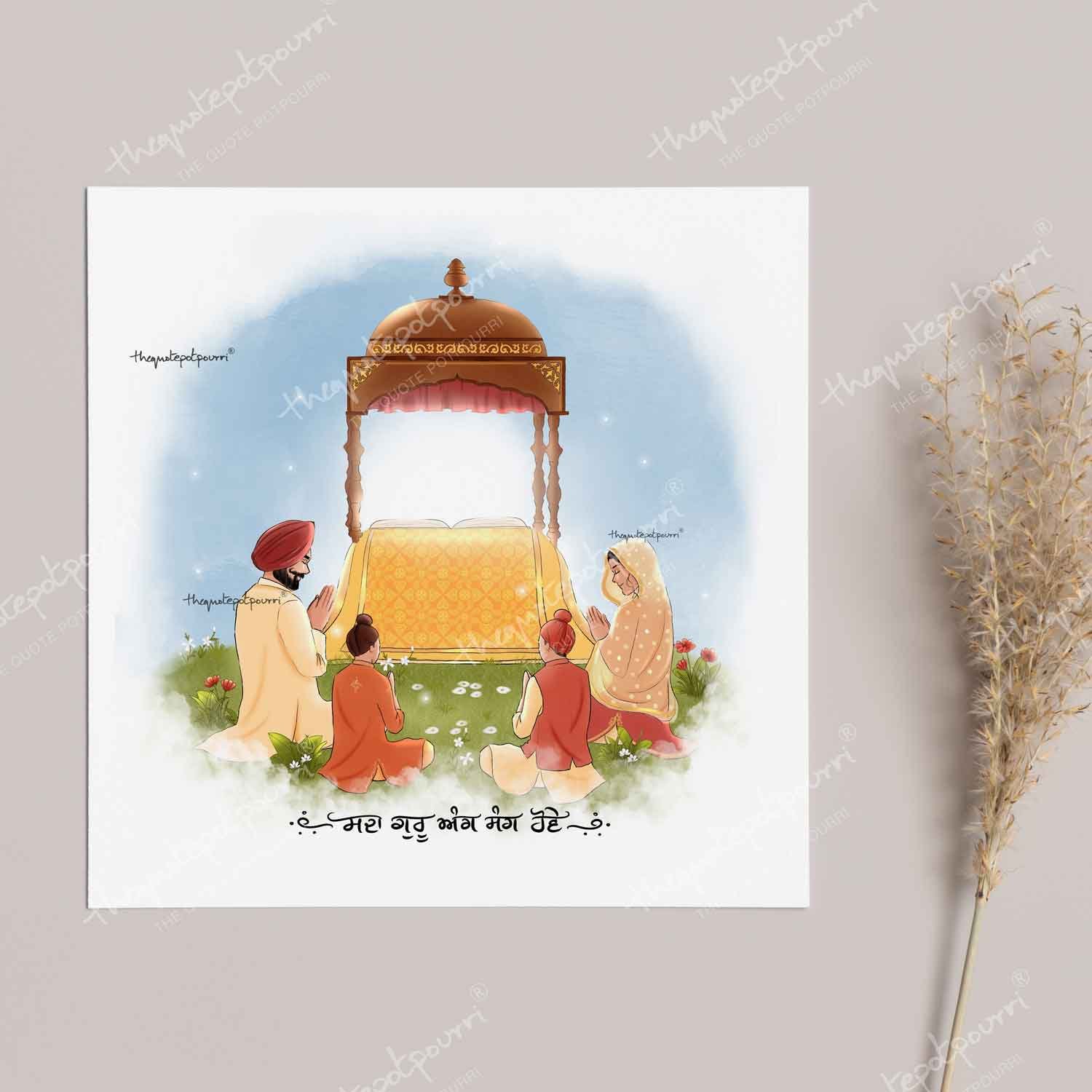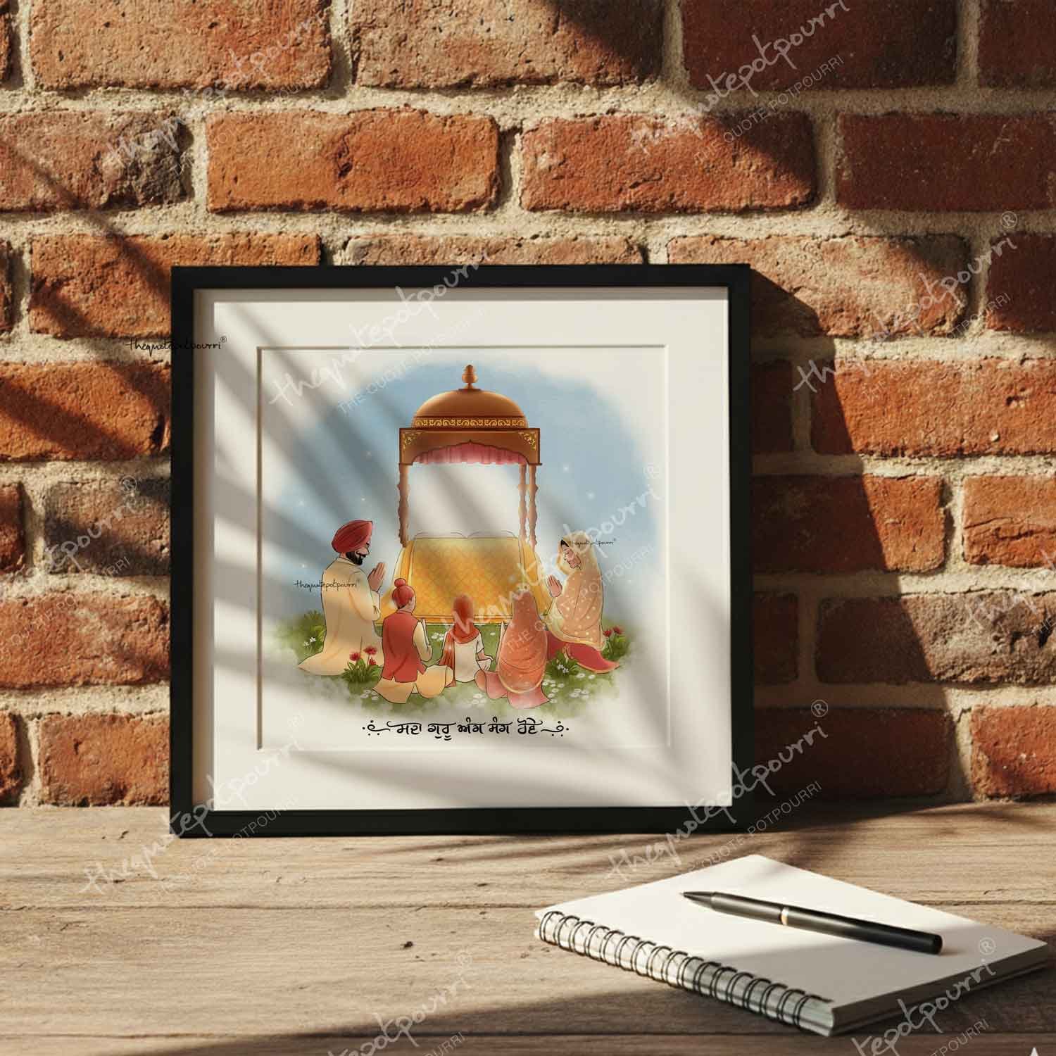 Ang Sang | Family Praying Art | Guru Ang Sang | Punjabi kids | Sikh art | Punjabi Art | Unique gifts | Singh | Kaur | Sikh Couple | Sikh Family Art