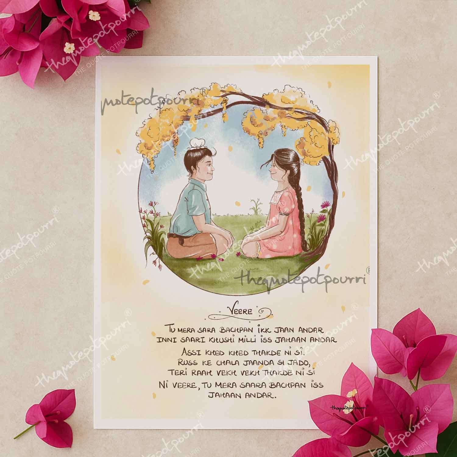 Brother Sister Poster | Veere Poem Art | Punjabi Brother and Sister Art | Punjabi Art | Sikh Art | Singh | Kaur | Poetry Art