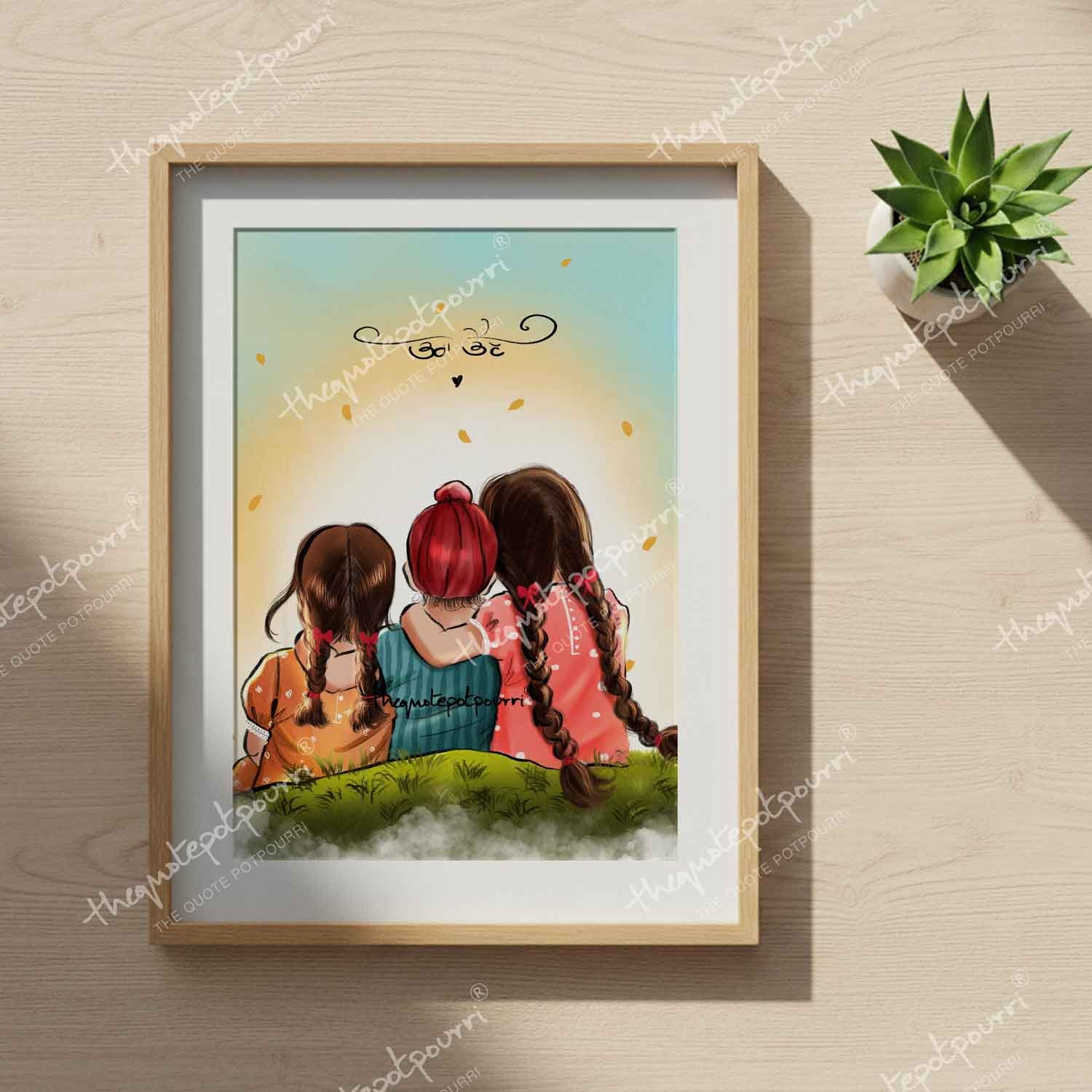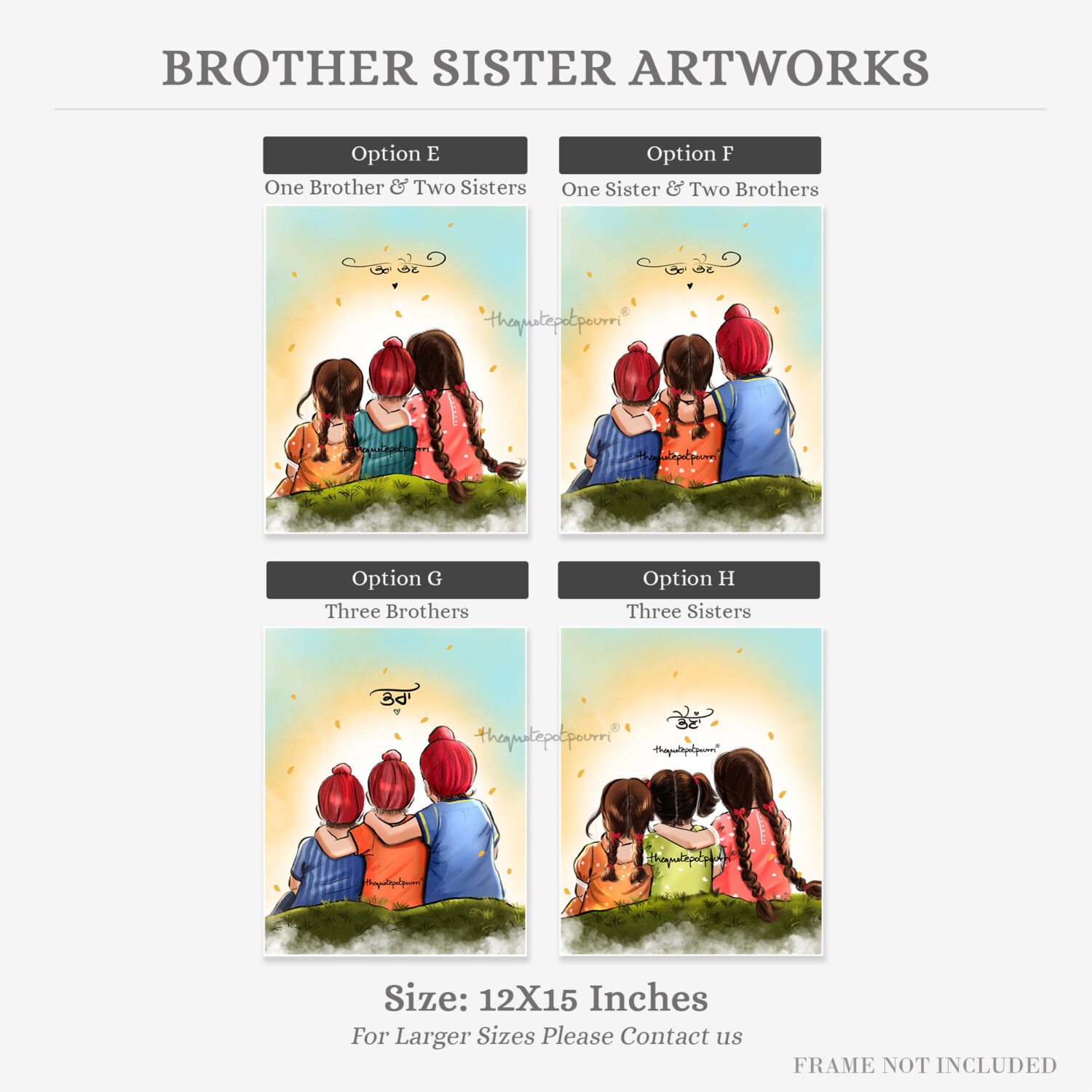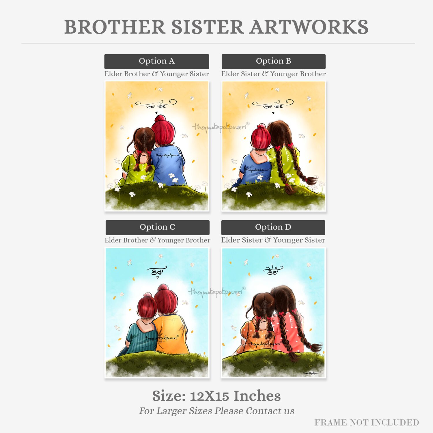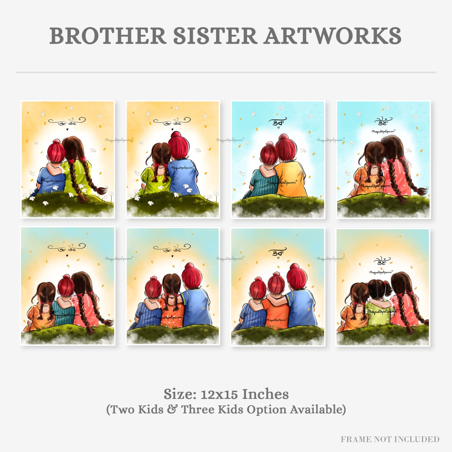 These artworks on siblings were made keeping this very thing in mind: Celebrating family. They make great gifts for your sibling’s birthdays and special events. Options are available to personalise with names as well.