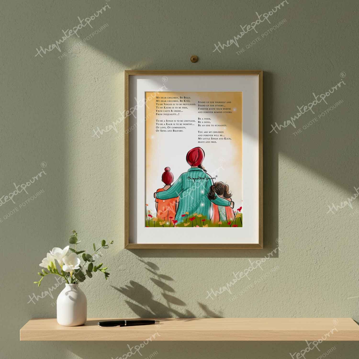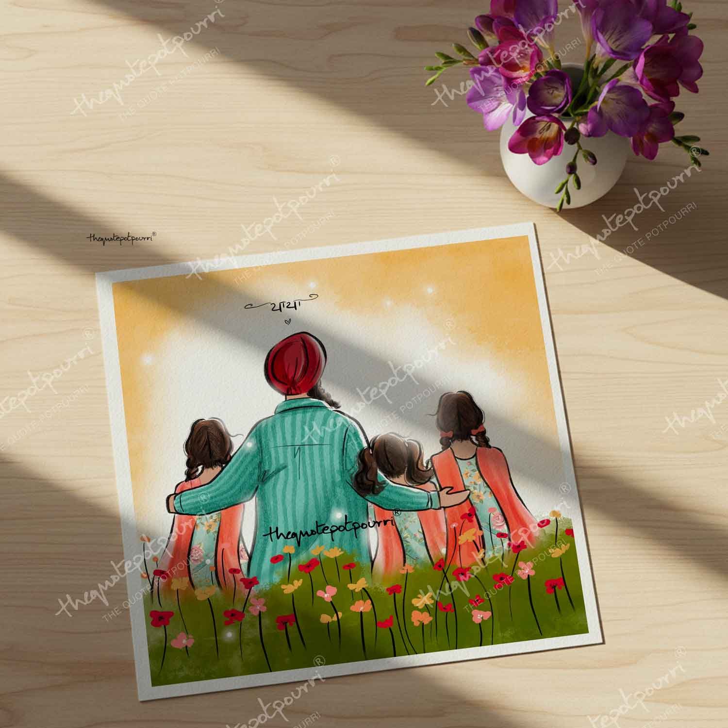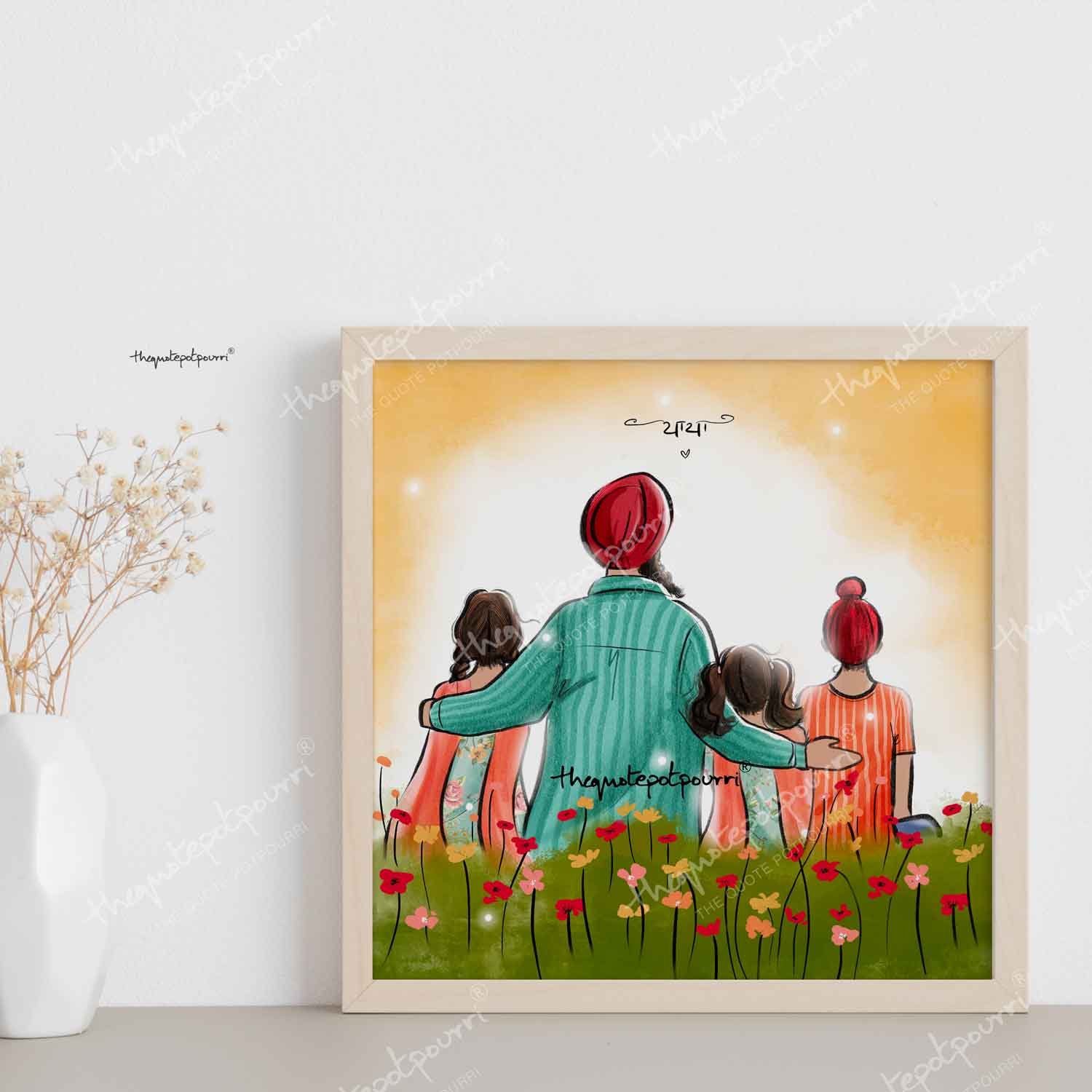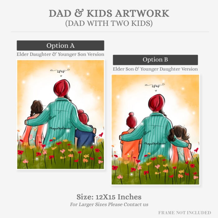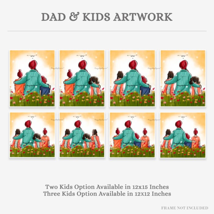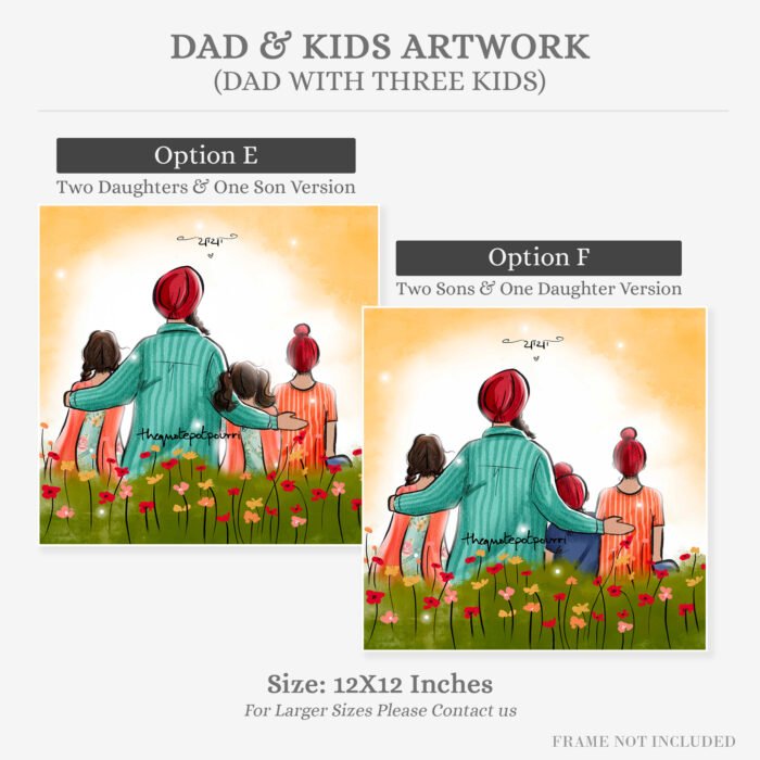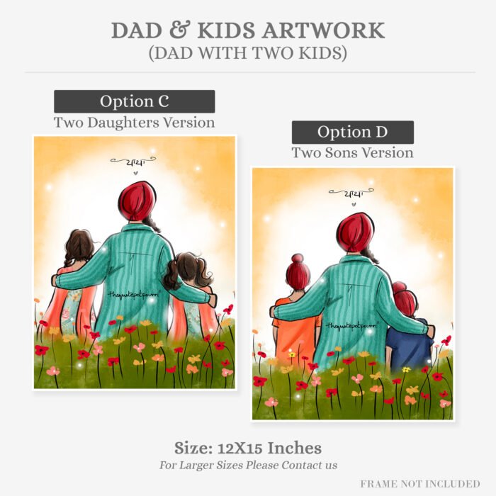 Dad and Kids Artwork | Sikh Art | Punjabi Art | Sikh Home Décor | Sikh Family | Unique Gifts | Gurbani Art | Father’s Day