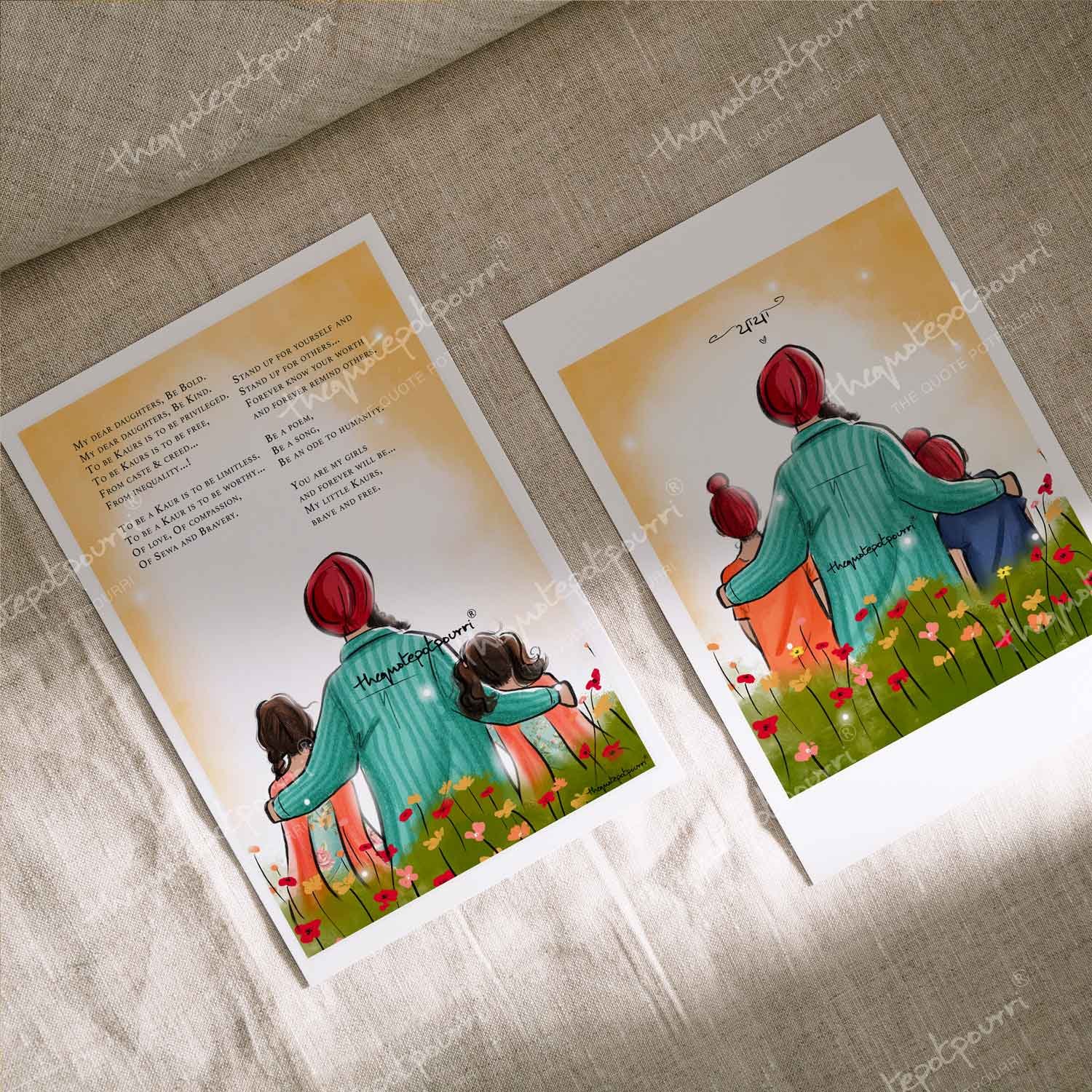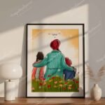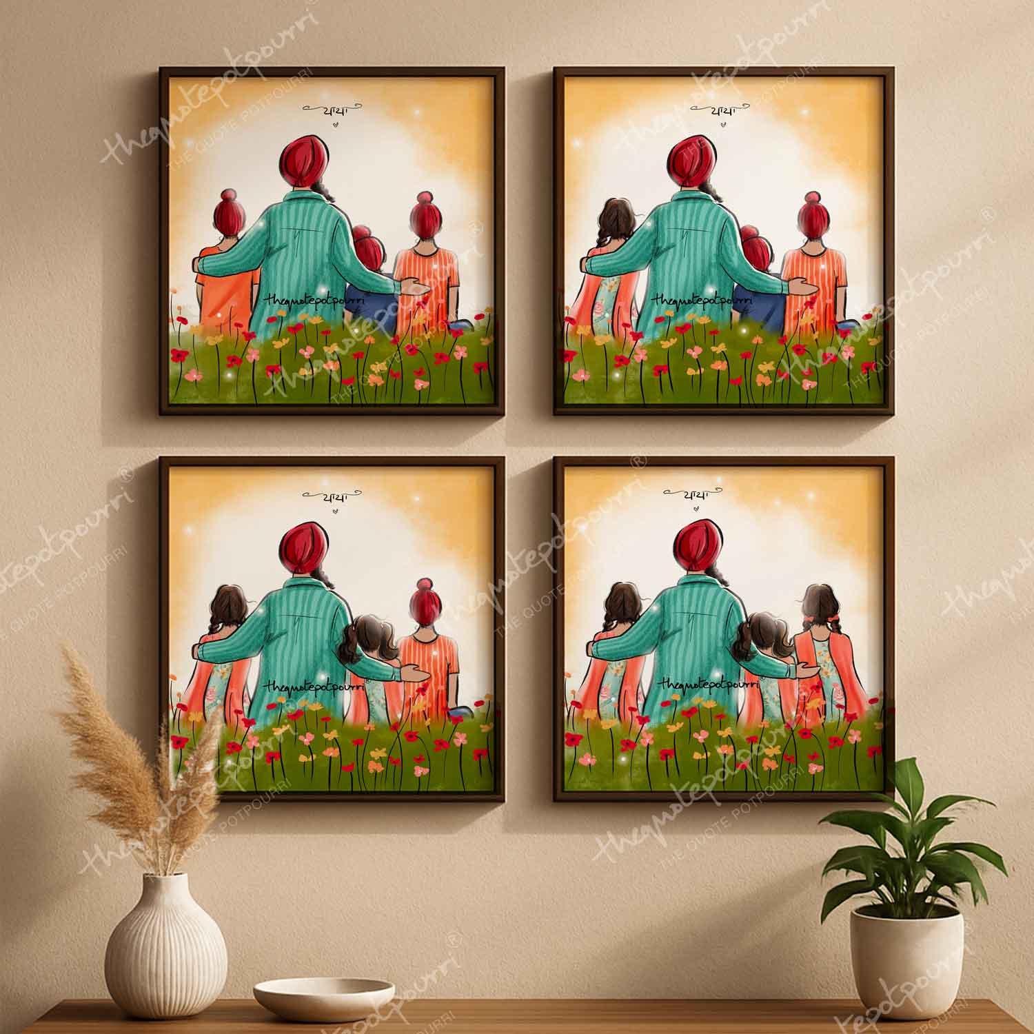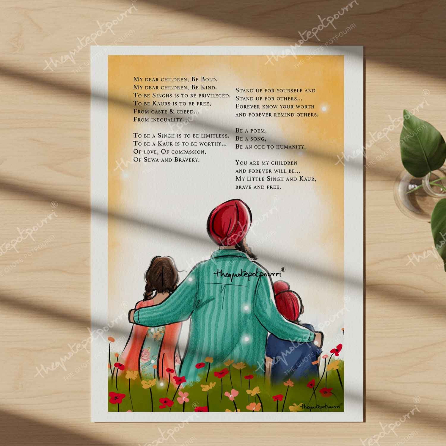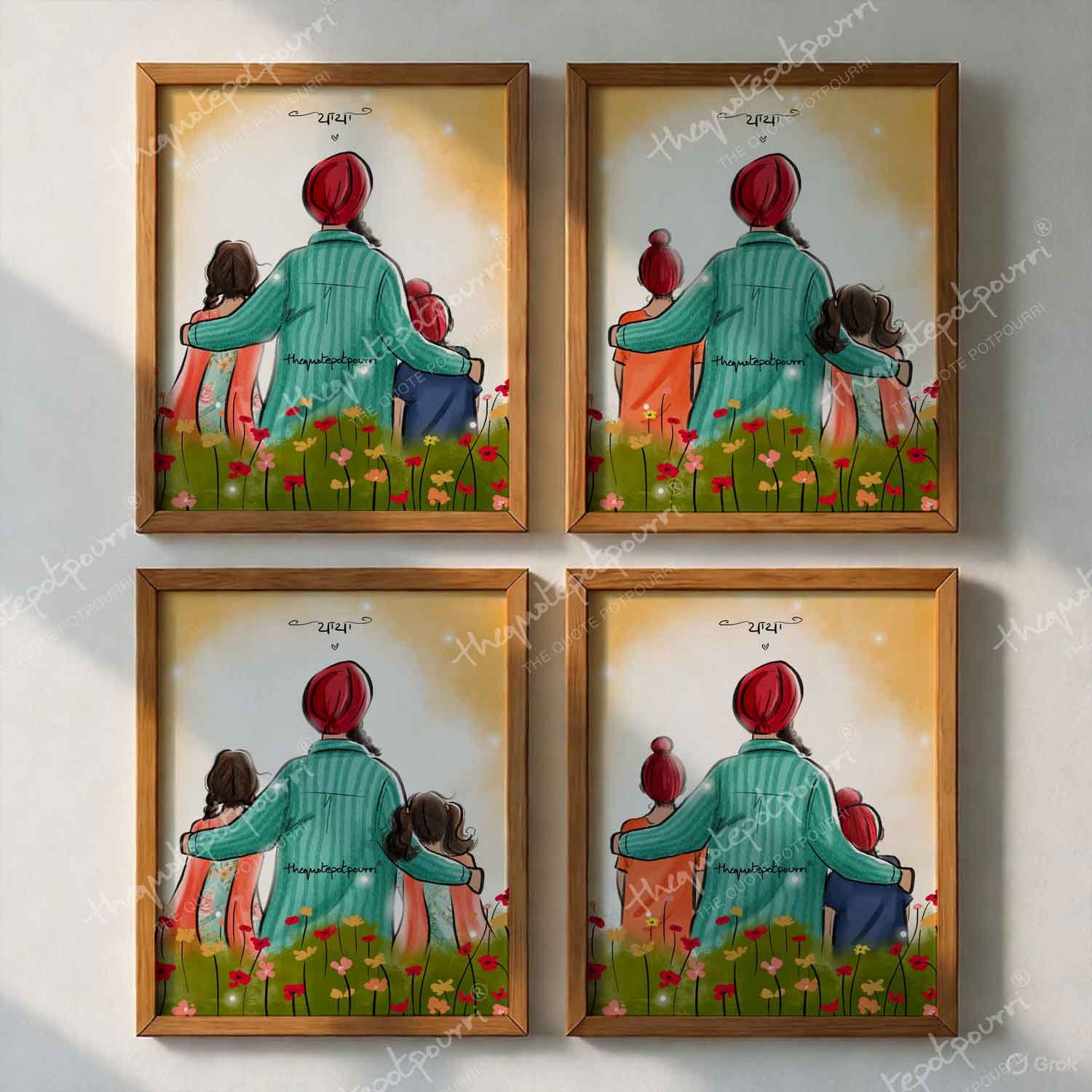 Dad and Kids Artwork | Sikh Art | Punjabi Art | Sikh Home Décor | Sikh Family | Unique Gifts | Gurbani Art | Father’s Day