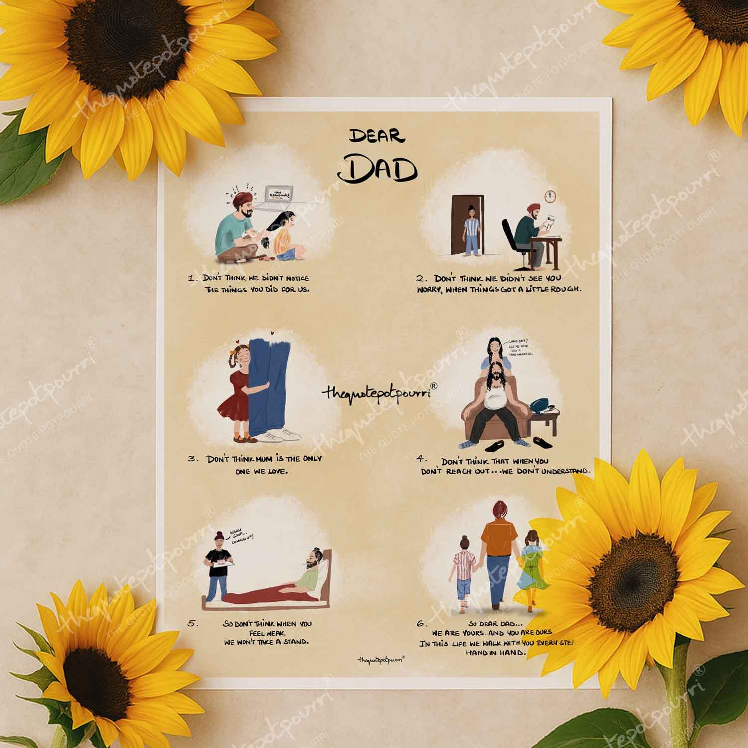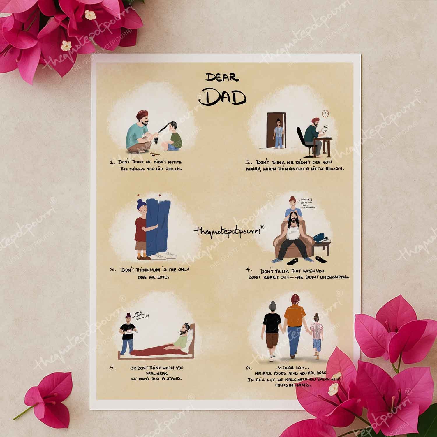 Dear Dad Art Poster | Fathers Day Poster | Father and Two Kids Poster | Father and Two Children Art | Fathers Day Gifts| Unique Gifts for Dad