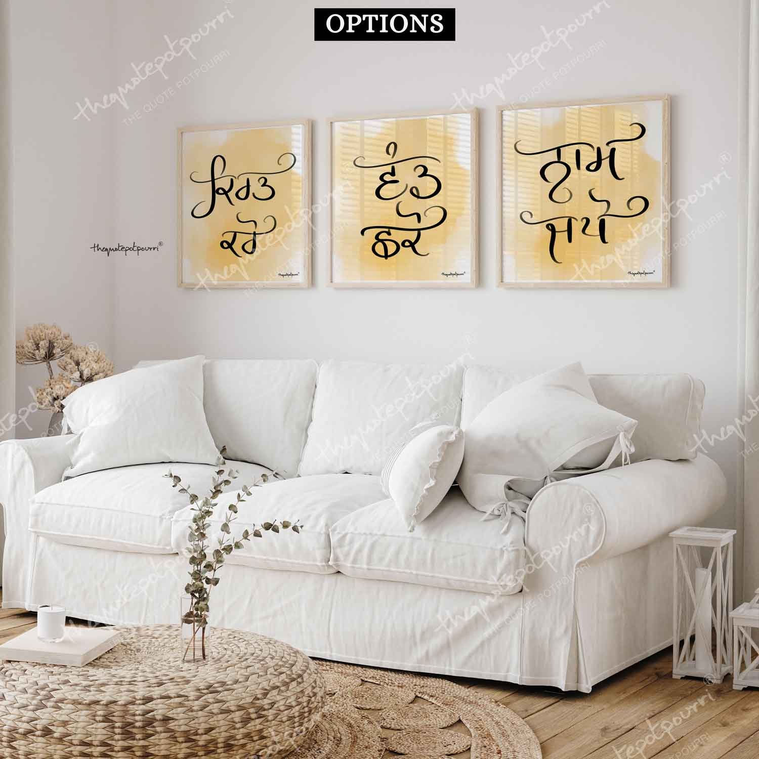Gurmukhi Wall Art Sets | Kirat Karo, Vand Chakko, Naam Jappo | Set of Three | Gurbani art print | Gurmukhi poster | Sikh Home Decor