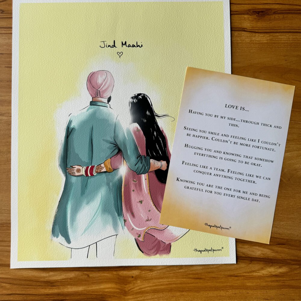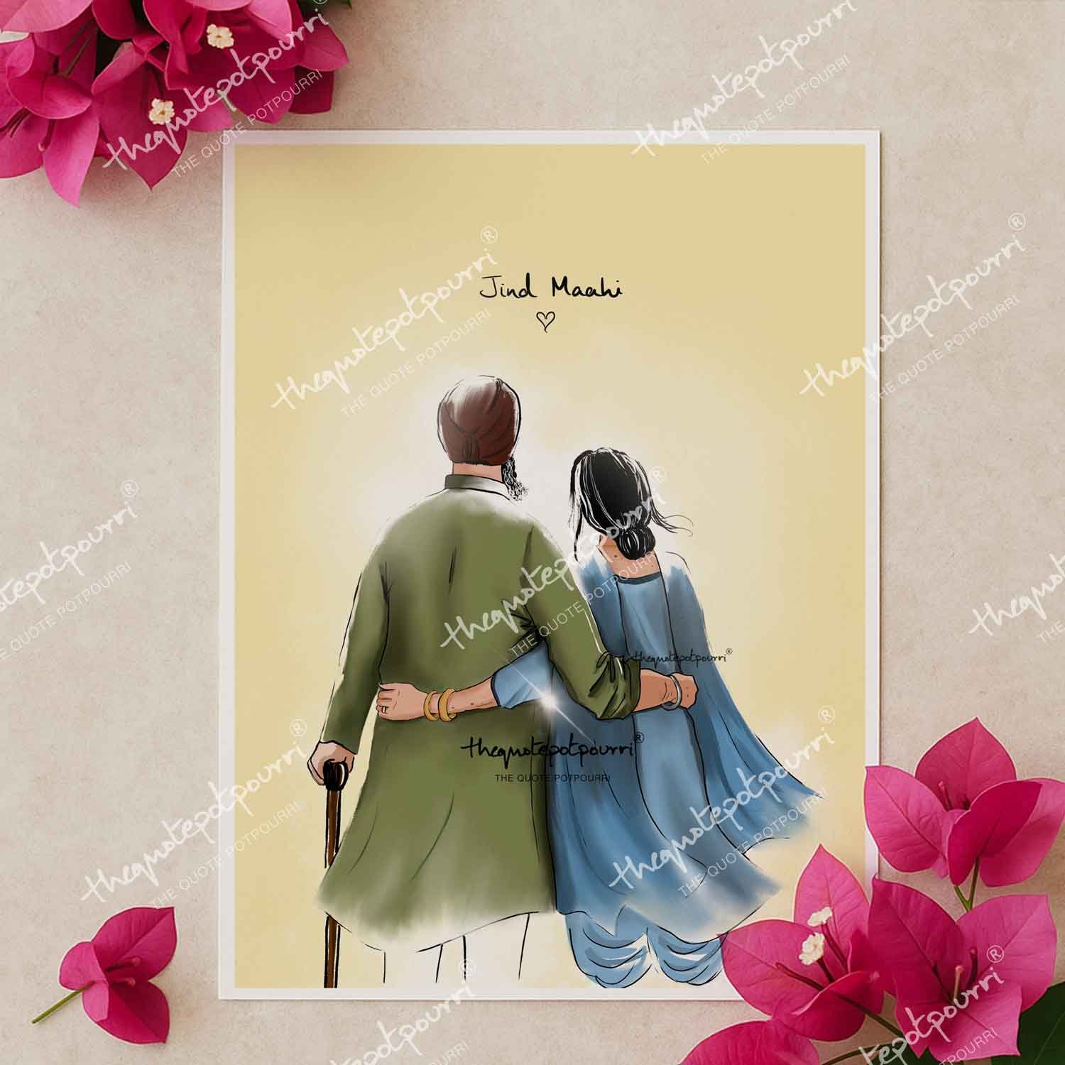 Jind Mahi | Indian Couple Art | Sikh Couple poster | Punjabi Couple | Sikh Home Decor | Sikh Gifts | Unique gifts | Anniversary Gifts