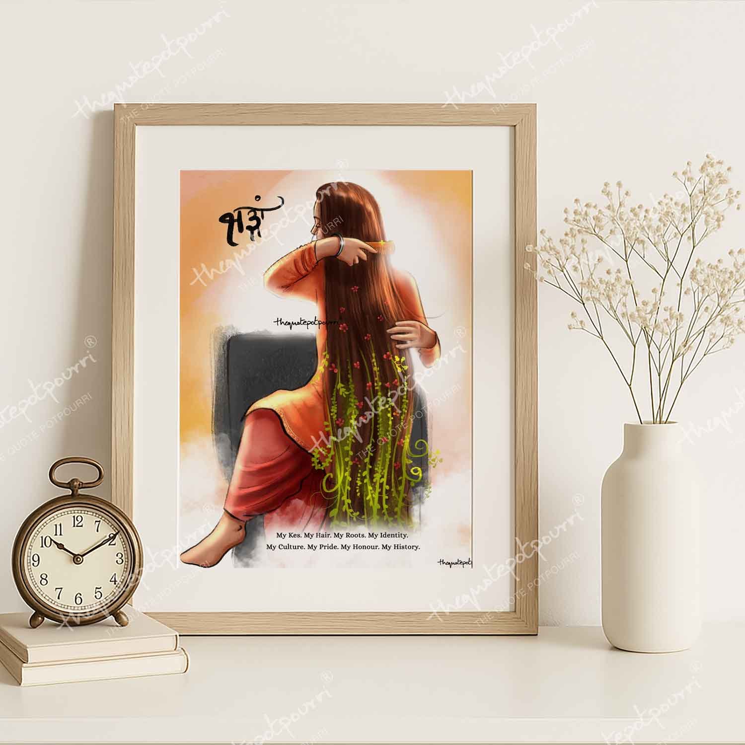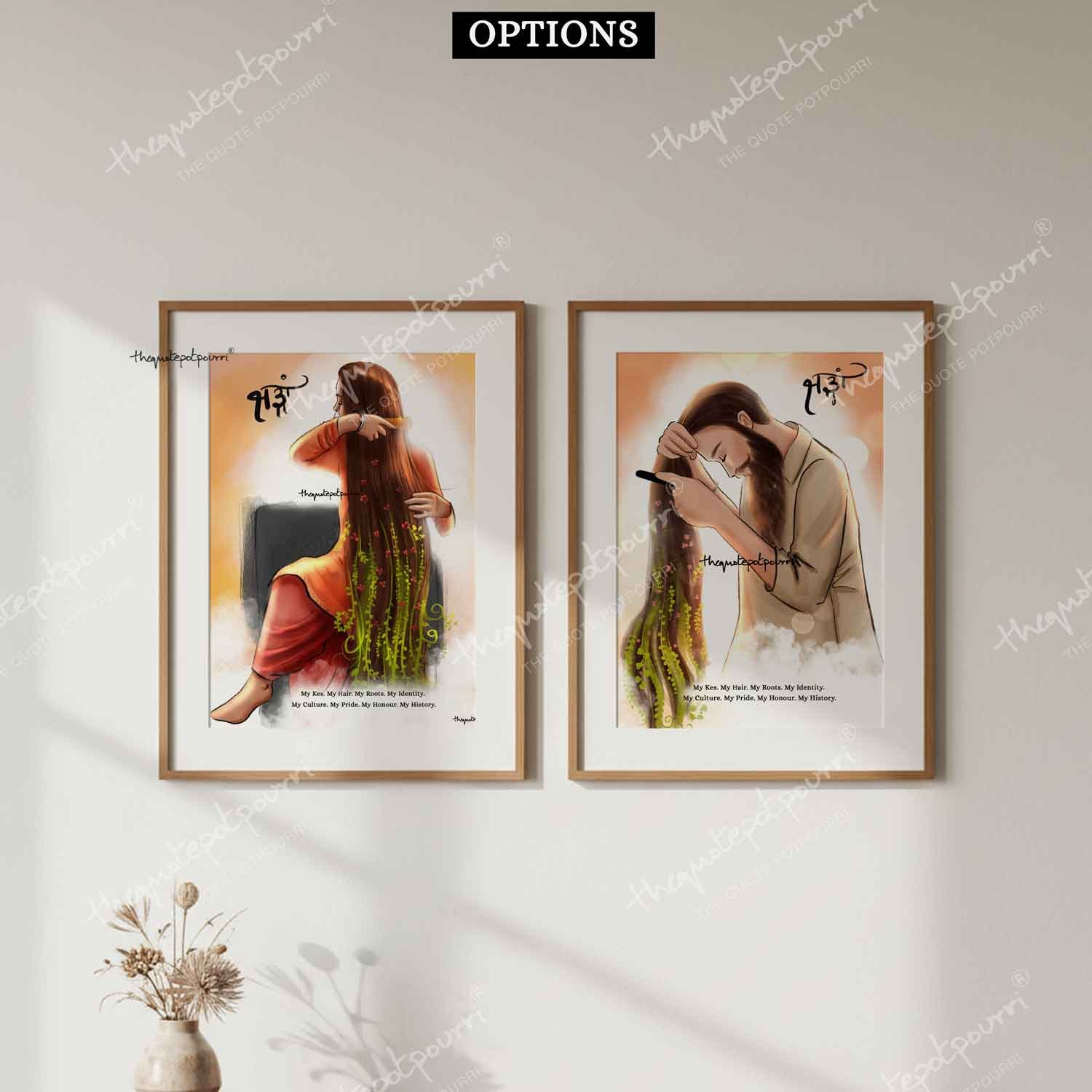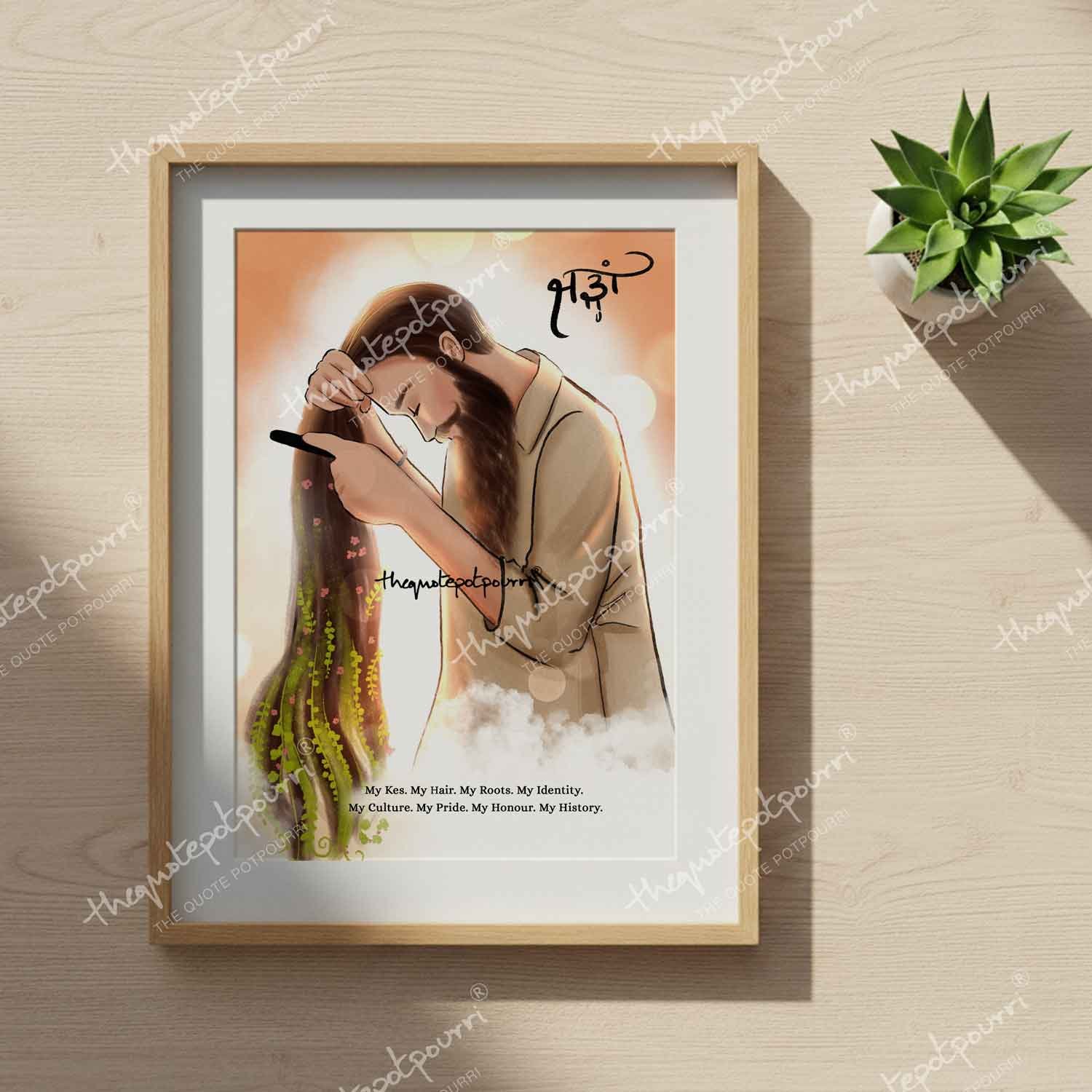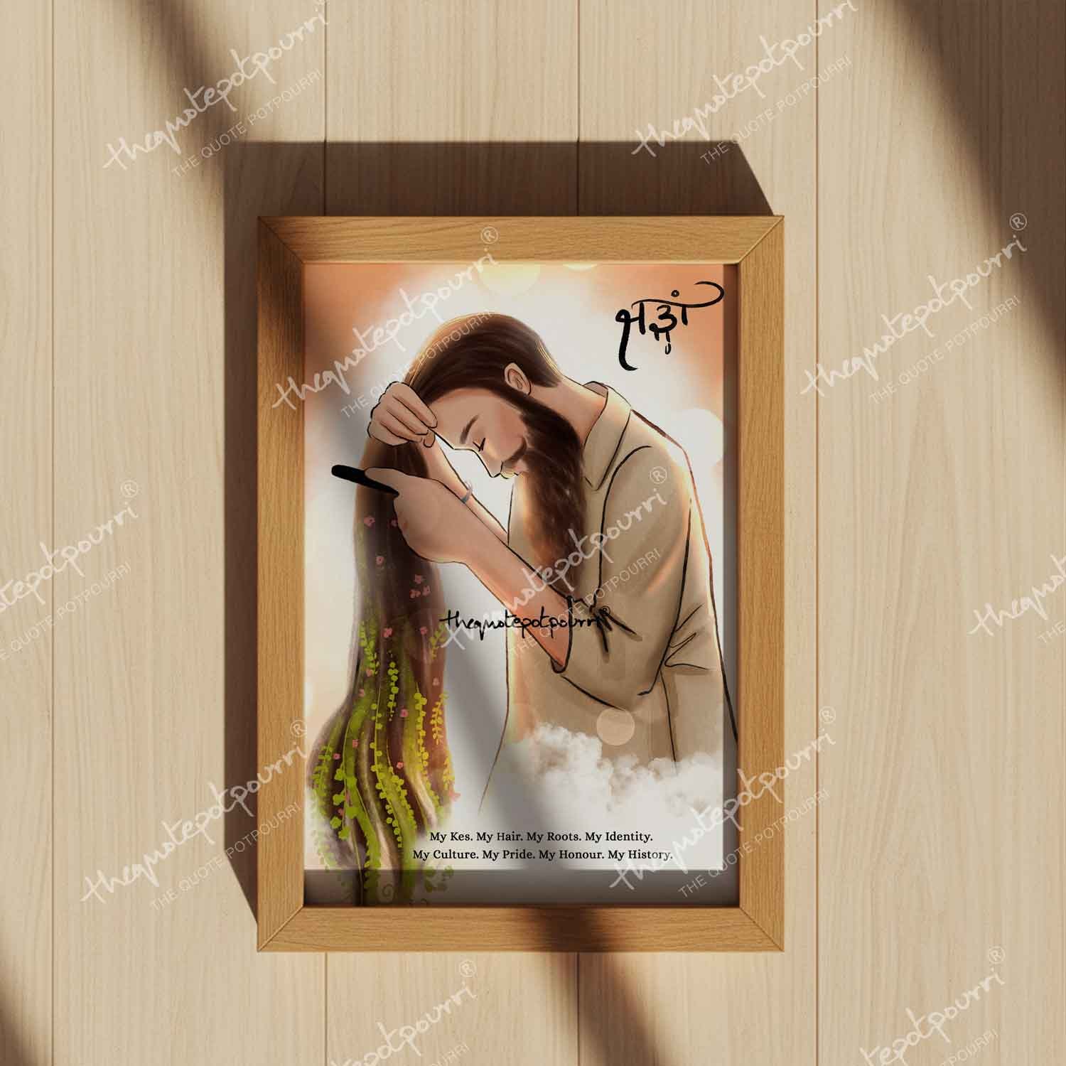Kesh | Sikh Man Combing Hair | Sikh Woman Combing Hair | Sikh Artwork | Sikh Culture Art | Sikh Posters | Sikh Paintings | Sardar Artwork | Sardarni Artwork