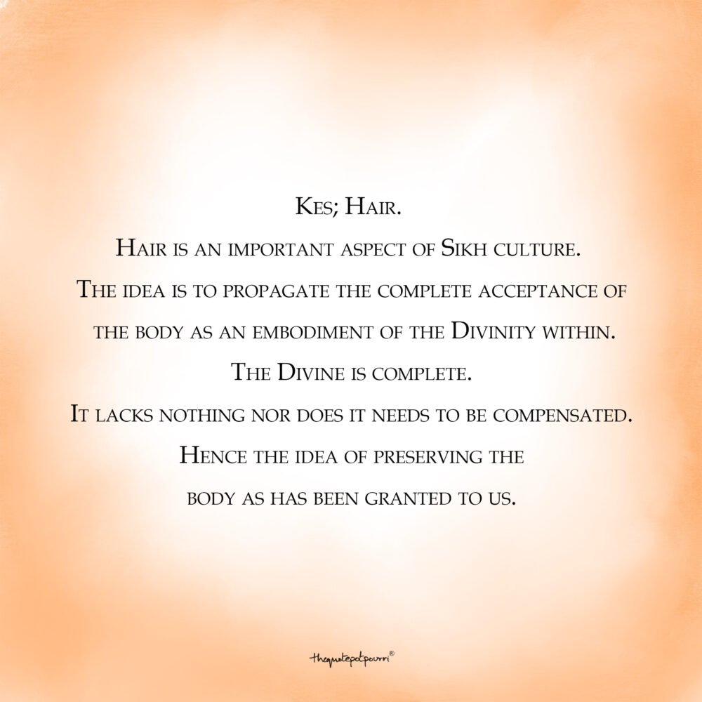Hair is an important aspect of Sikh culture. The idea is to propagate the complete acceptance of the body as a an embodiment of the Divinity within. The Divine is complete. It lacks nothing nor does it needs to be compensated. Hence the idea of preserving the body as has been granted to us.