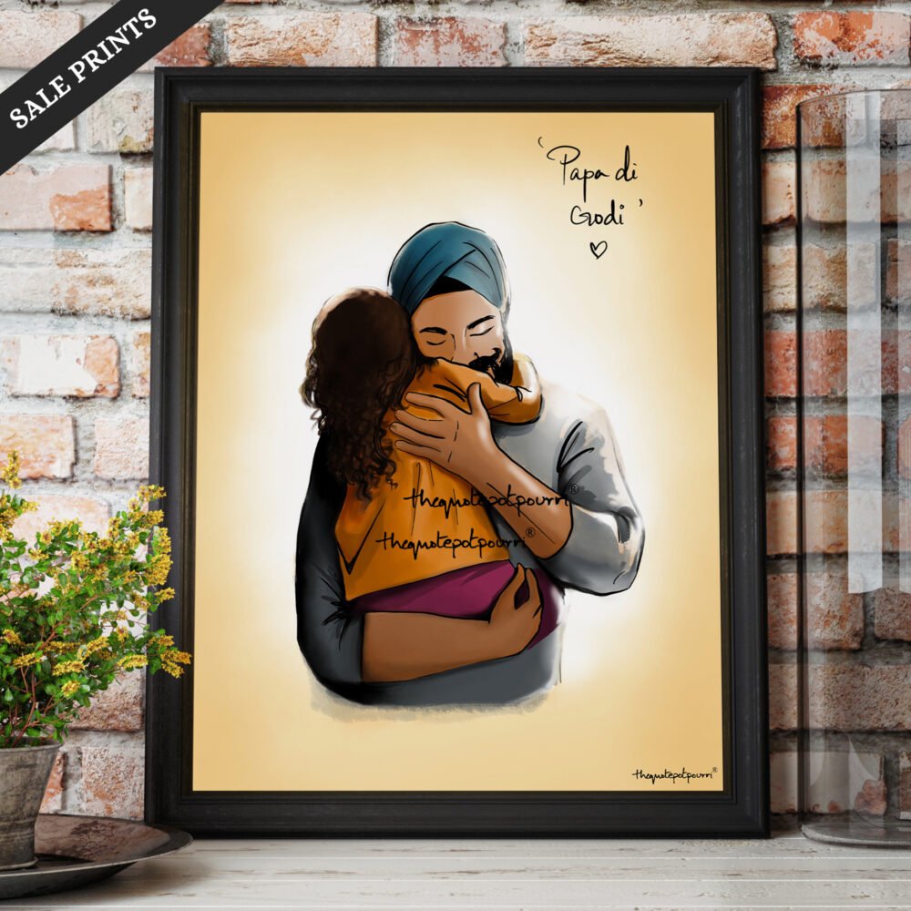 Be the first to review “Papa Di Godi | Sikh Father Art | Father’s Day Special Gift | Gift for Dad | Father and Son Art | Sikh Home Decor | Digital Print Sale”