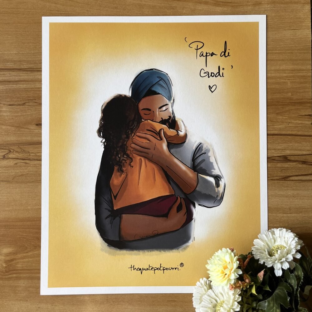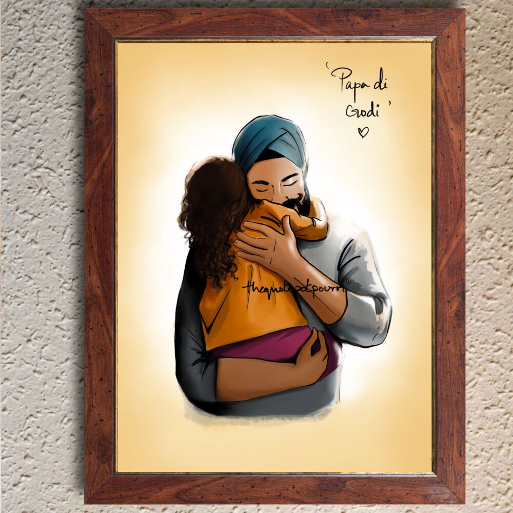Papa Di Godi | Sikh Father Art | Father’s Day Special Gift | Gift for Dad | Father and Son Art | Sikh Home Decor | Digital Print Sale