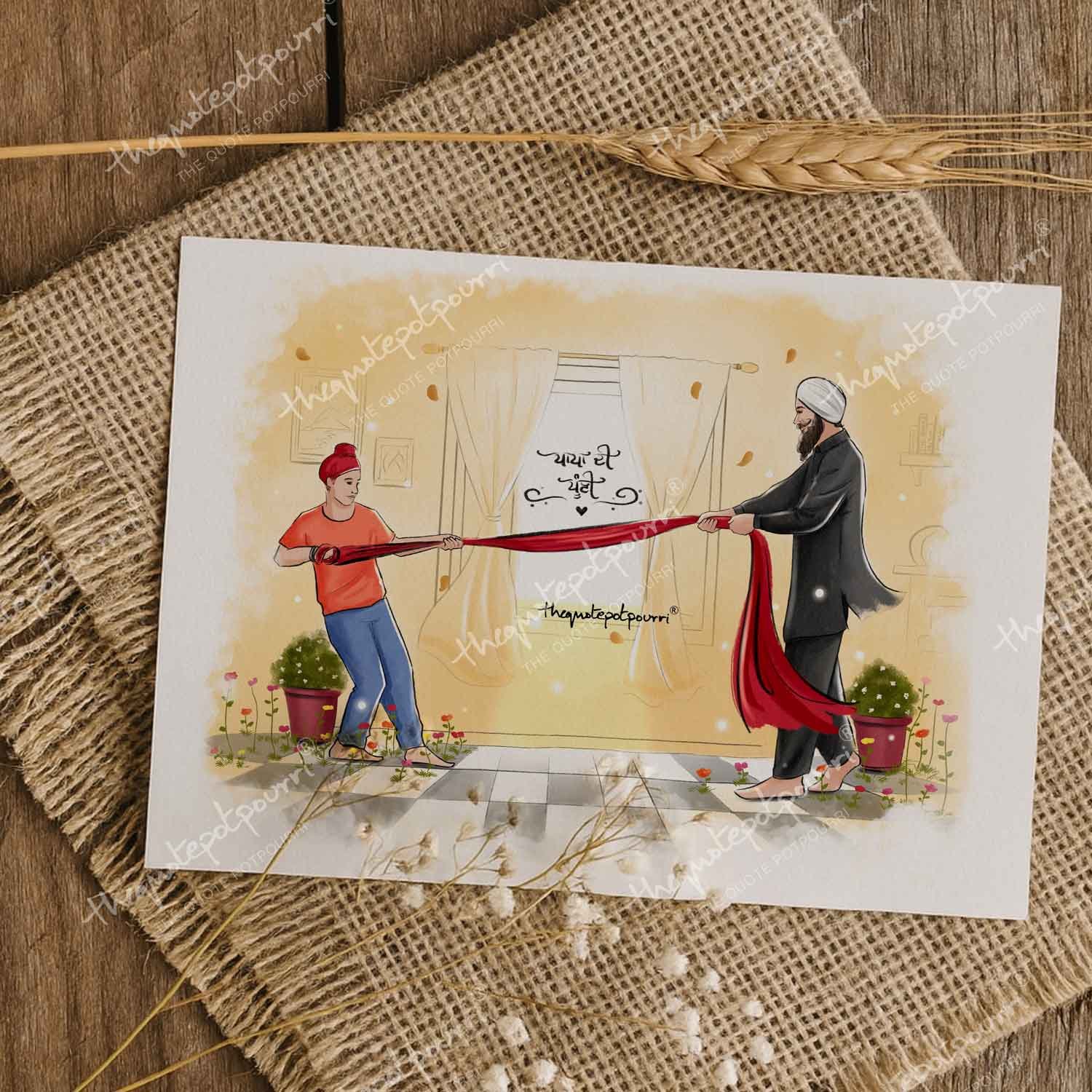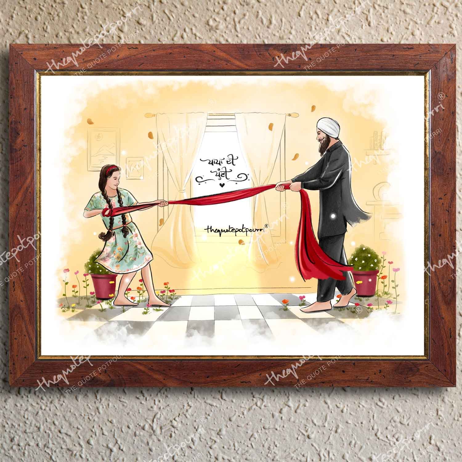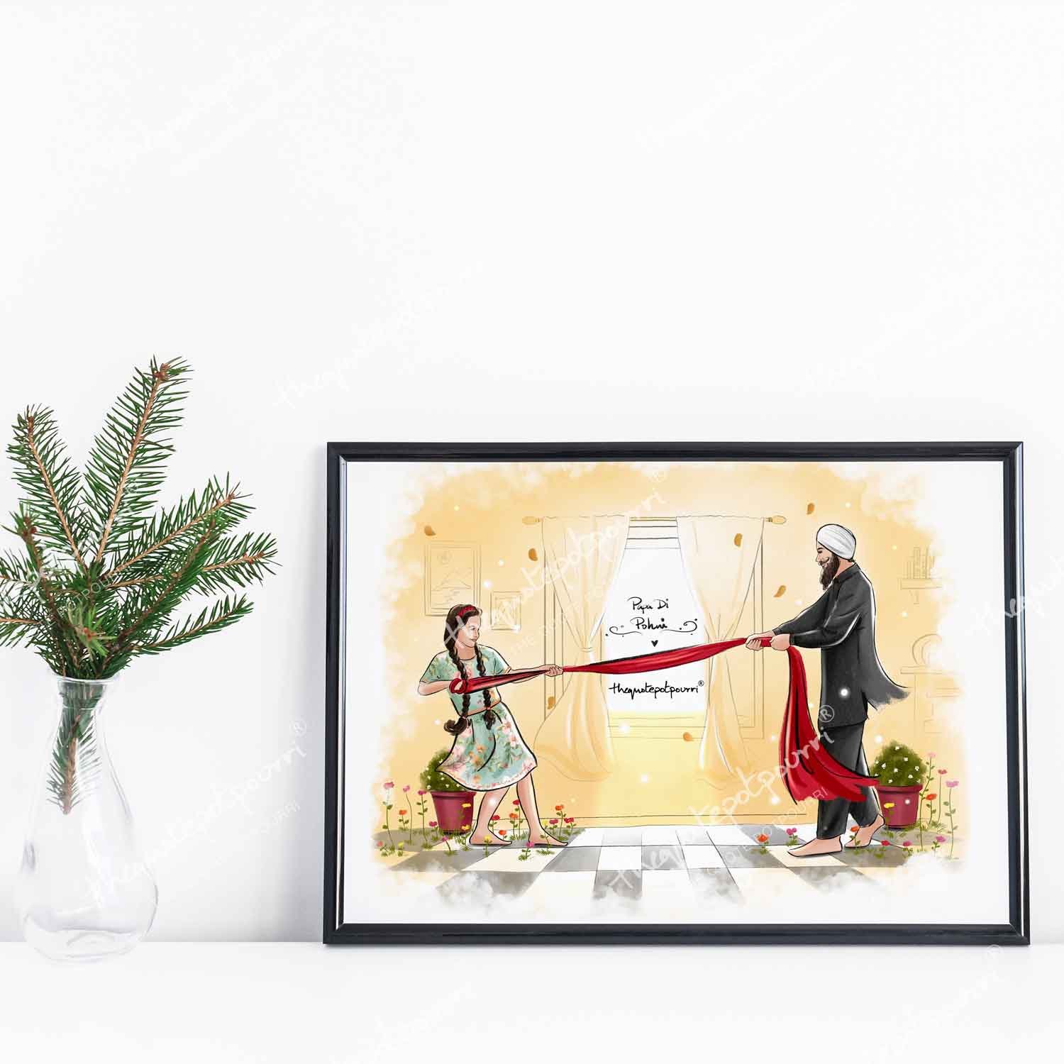 Papa Di Pohni | Father and Daughter | Father and Son | Punjabi Art | Father’s Day Gift | Sikh Family | Gurbani Art | Sikh Art