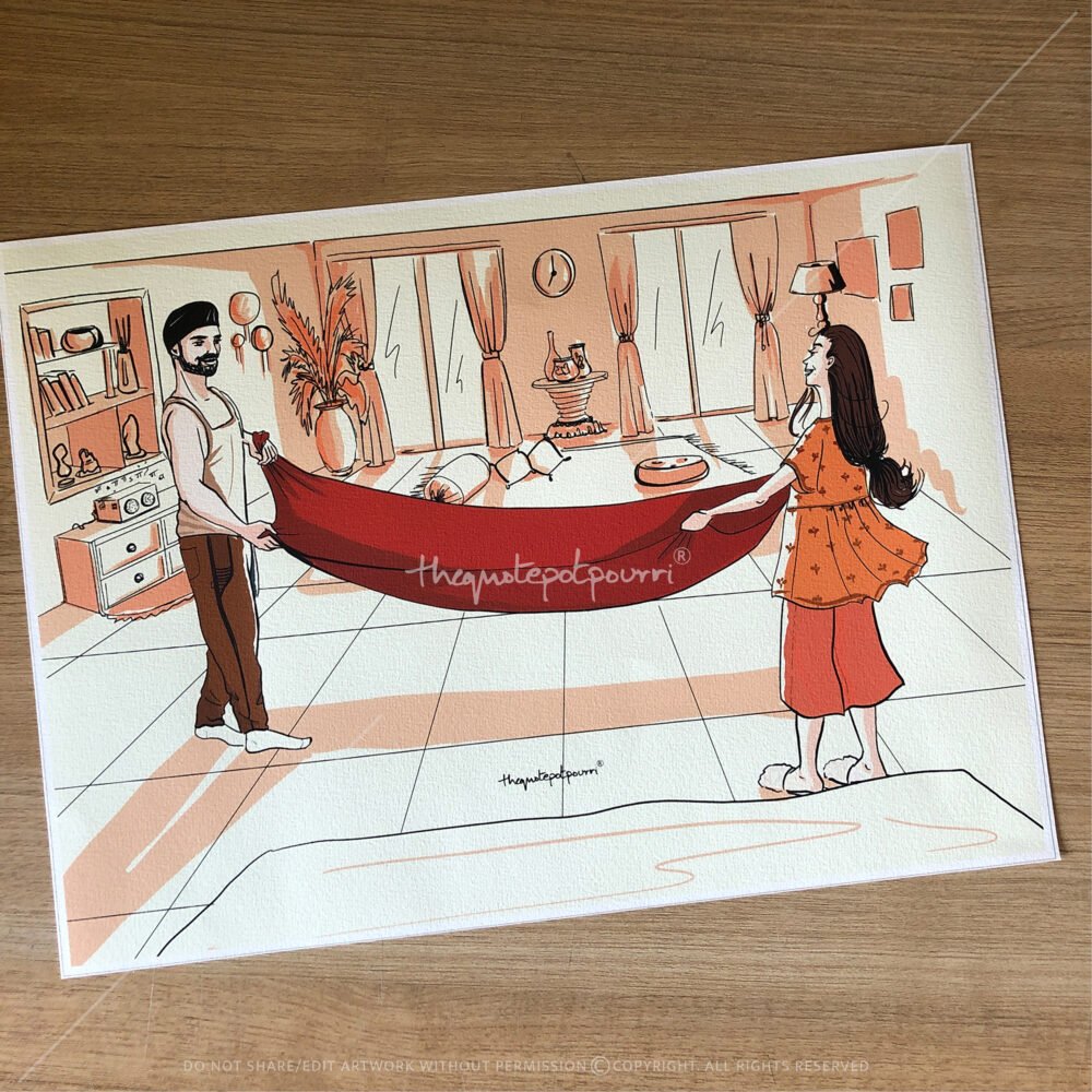 Someone once said to me that there is something beautifully poetic about helping your man do his ‘Pohni’ every time he gets ready. And that was how this sketch was born! Here’s to lazy Sunday mornings, lots of sunshine, Punjabi folk music in the background and pohni time conversations.❤️
