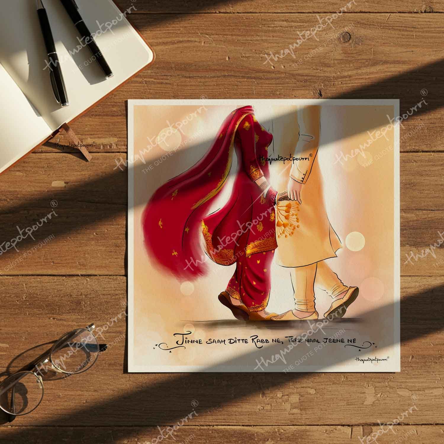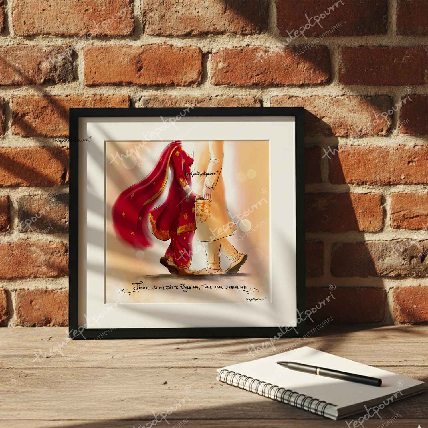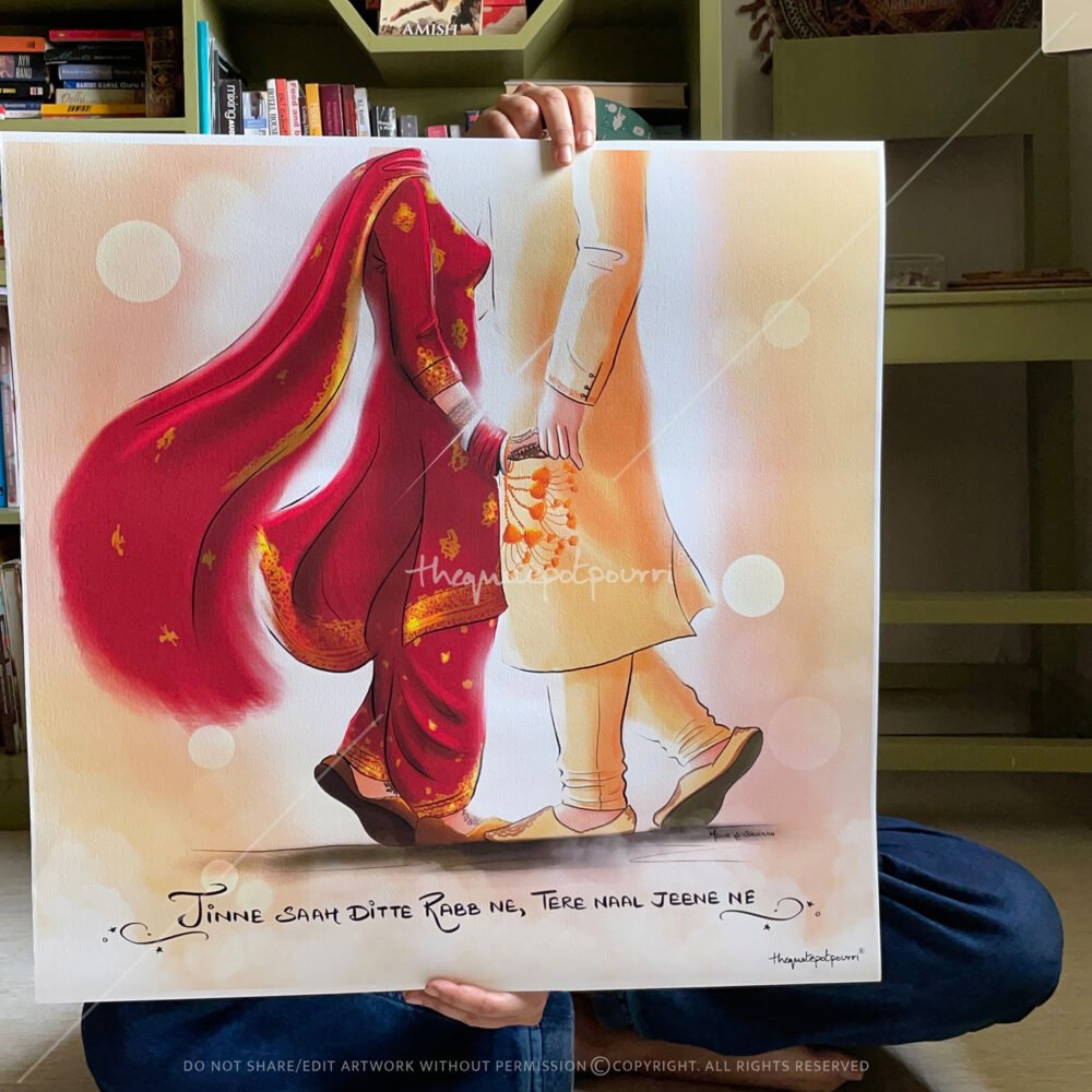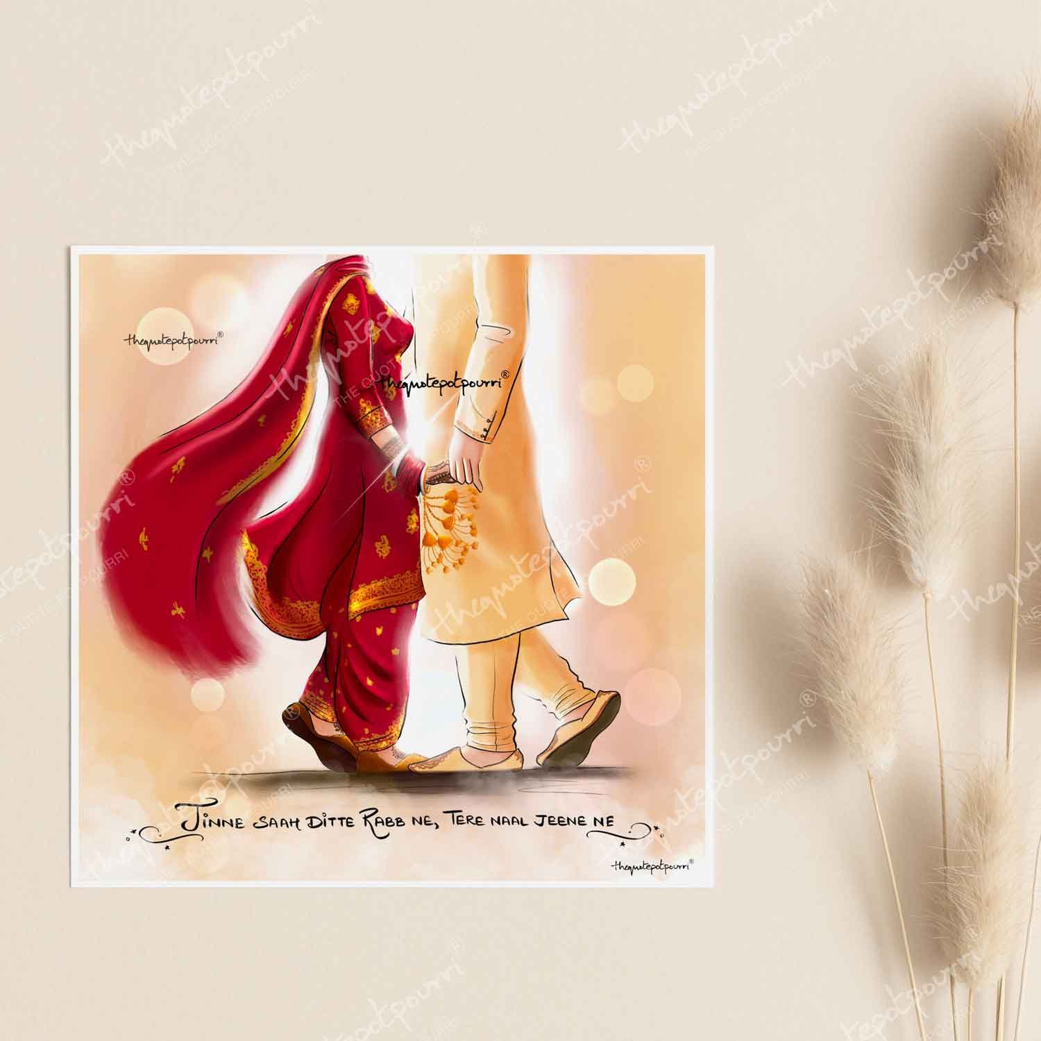 Saah | Sikh Couple Art | Wedding | Anniversary Gifts | Gifts for Couples | Sikh Gifts | Punjabi Couple Art