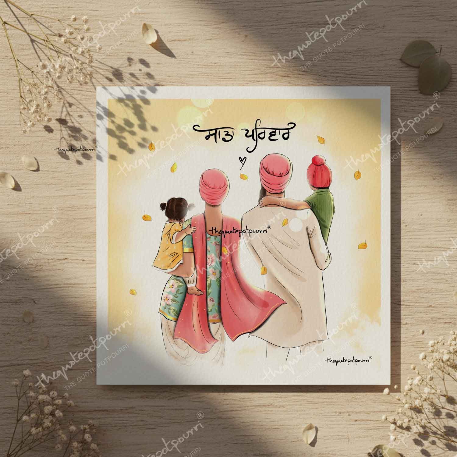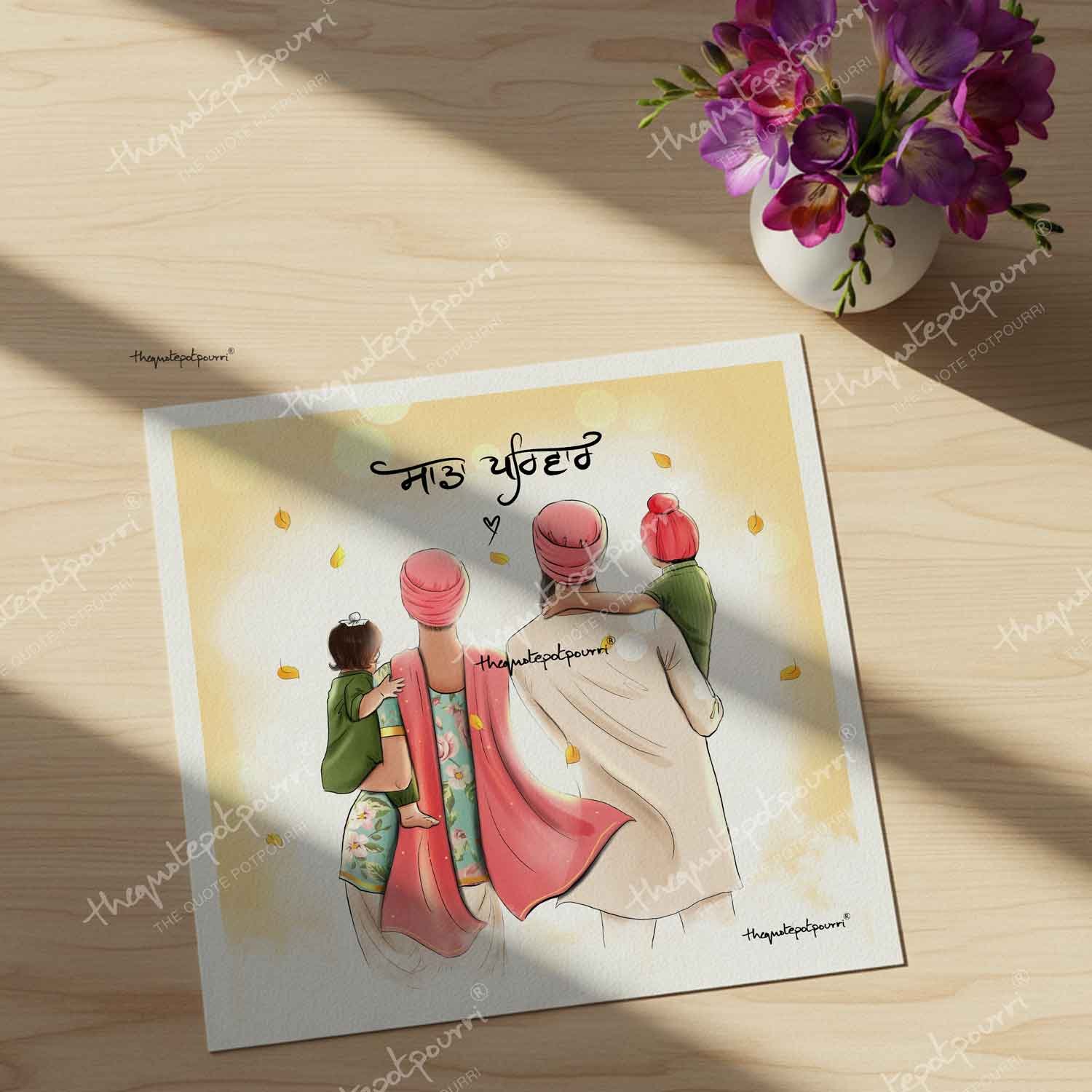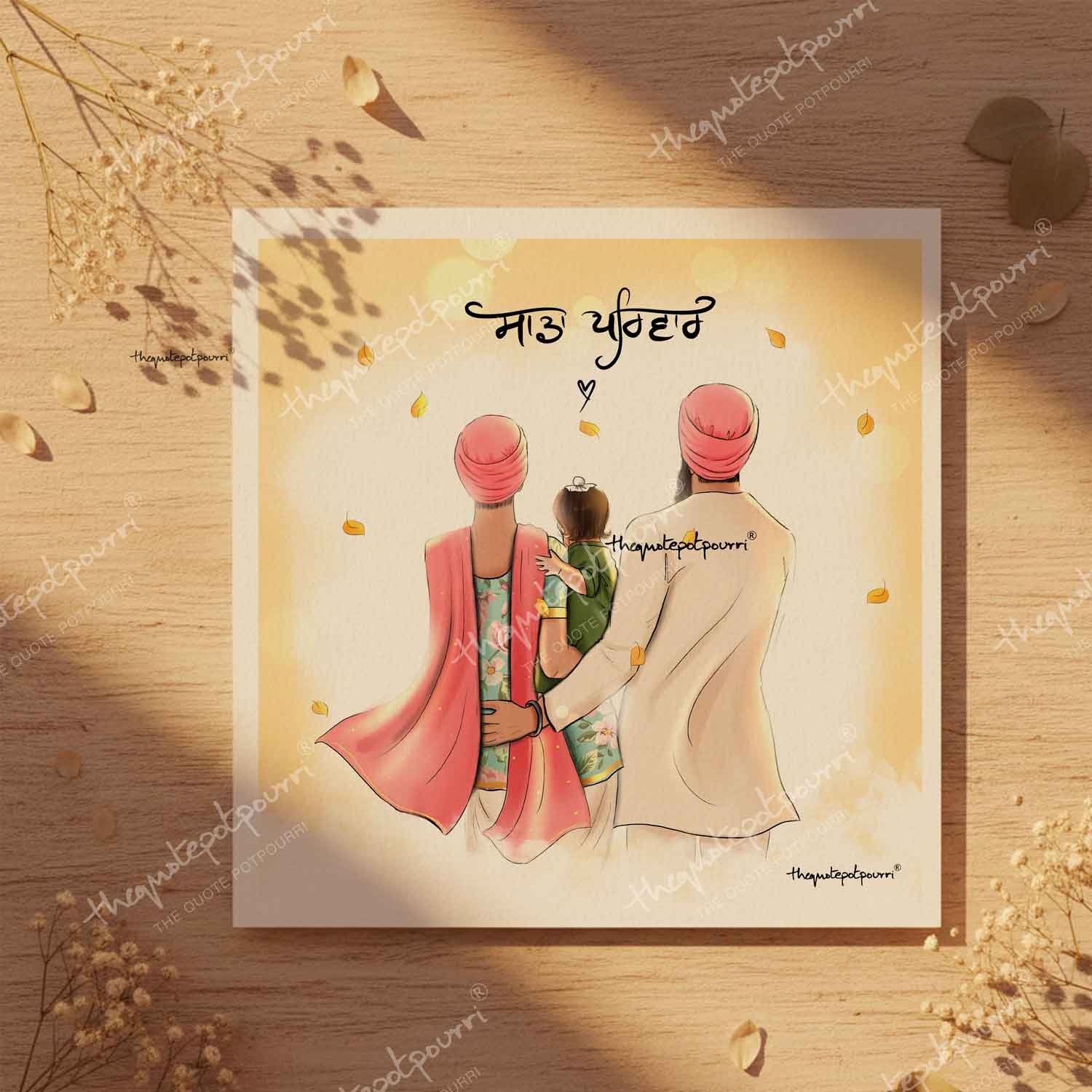 Sada Parivar | Keski | Sikh Family Art | Parents and Kids art | Dumala Couple | Sikh Turban | Punjabi art | Sikh Mom Dad