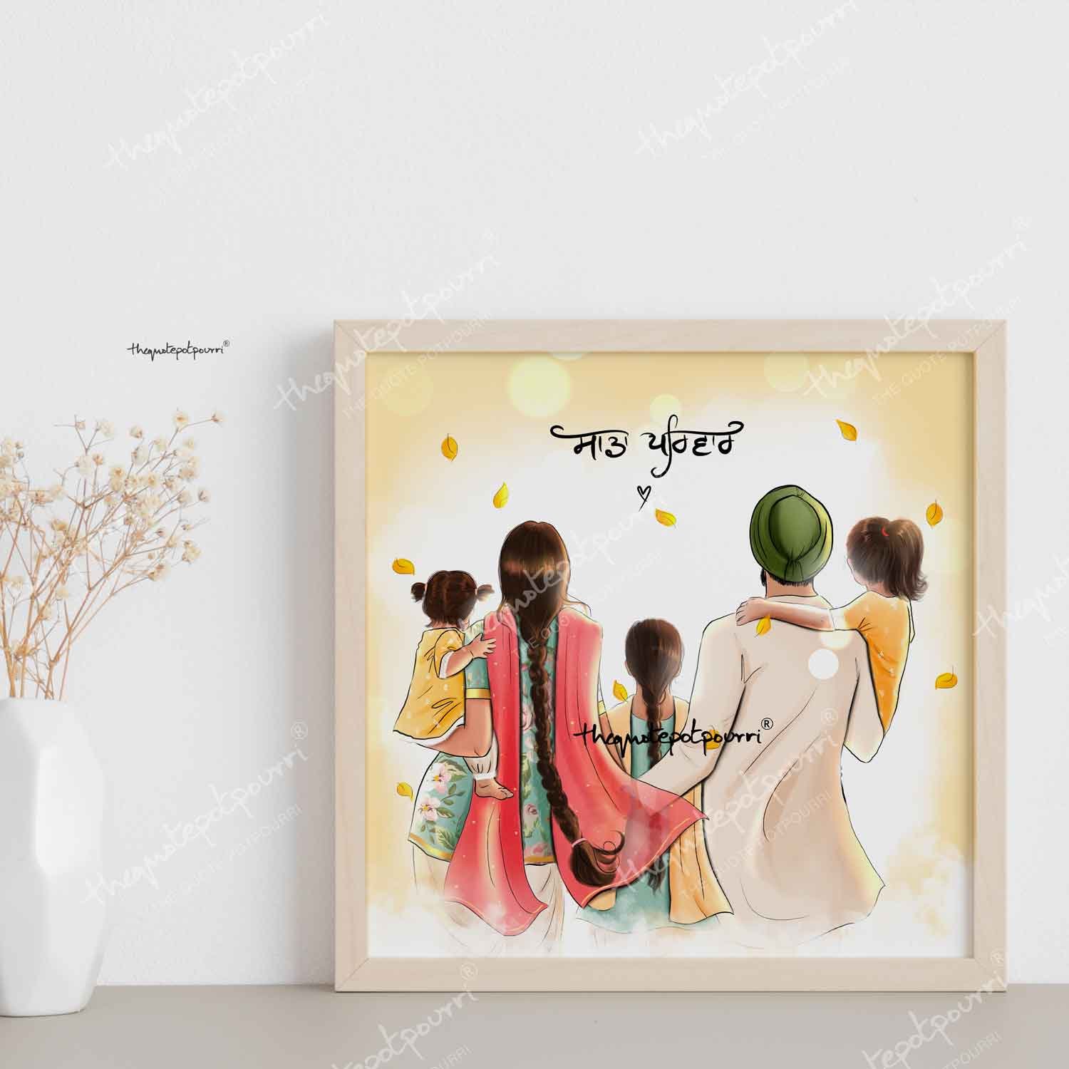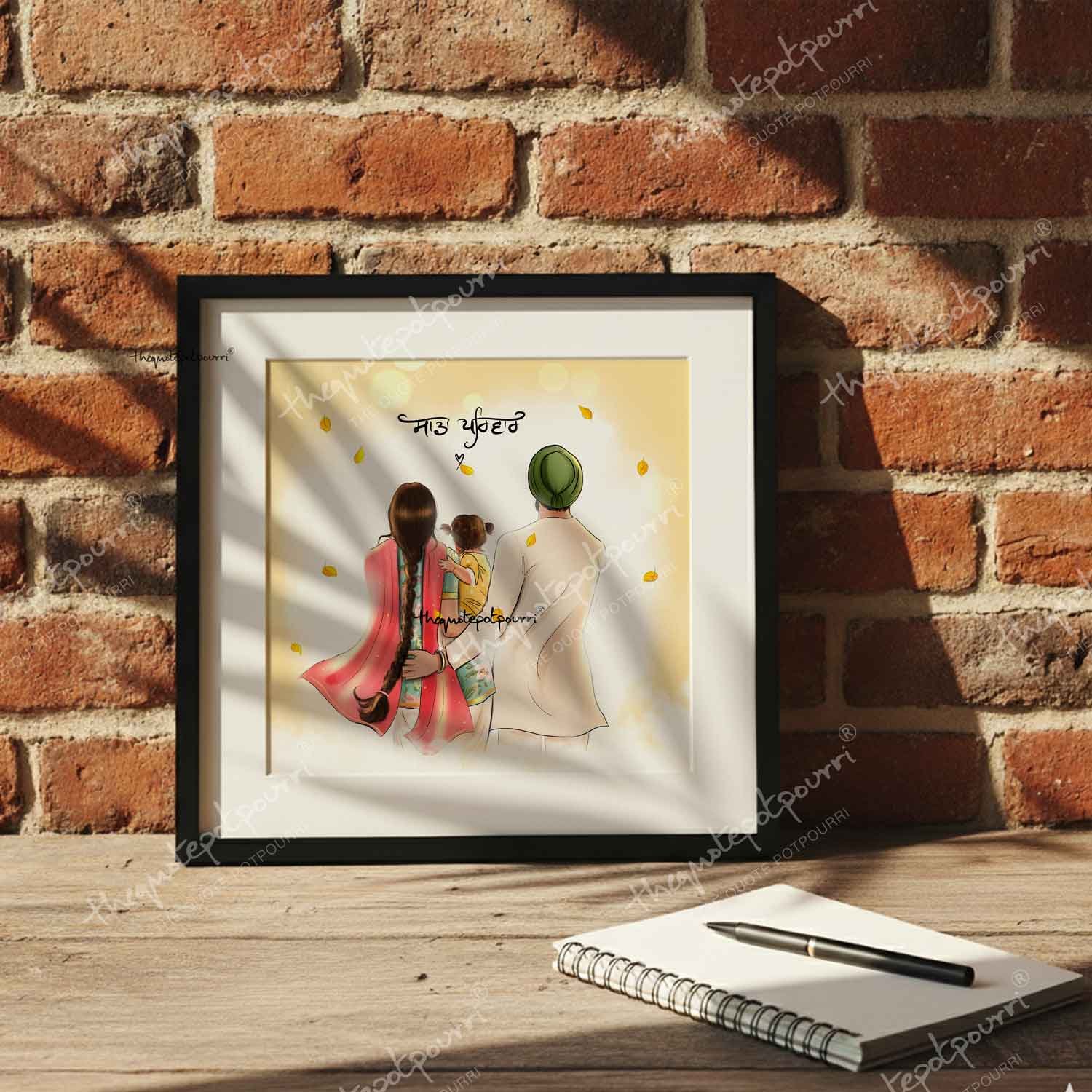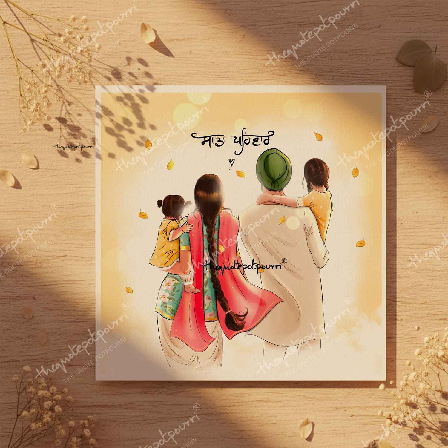 Sada Parivar | Parents and Kids Art | Sikh Family | Indian Family Art | Punjabi Family | Unique Gifts | Punjabi Art | Sikh Art