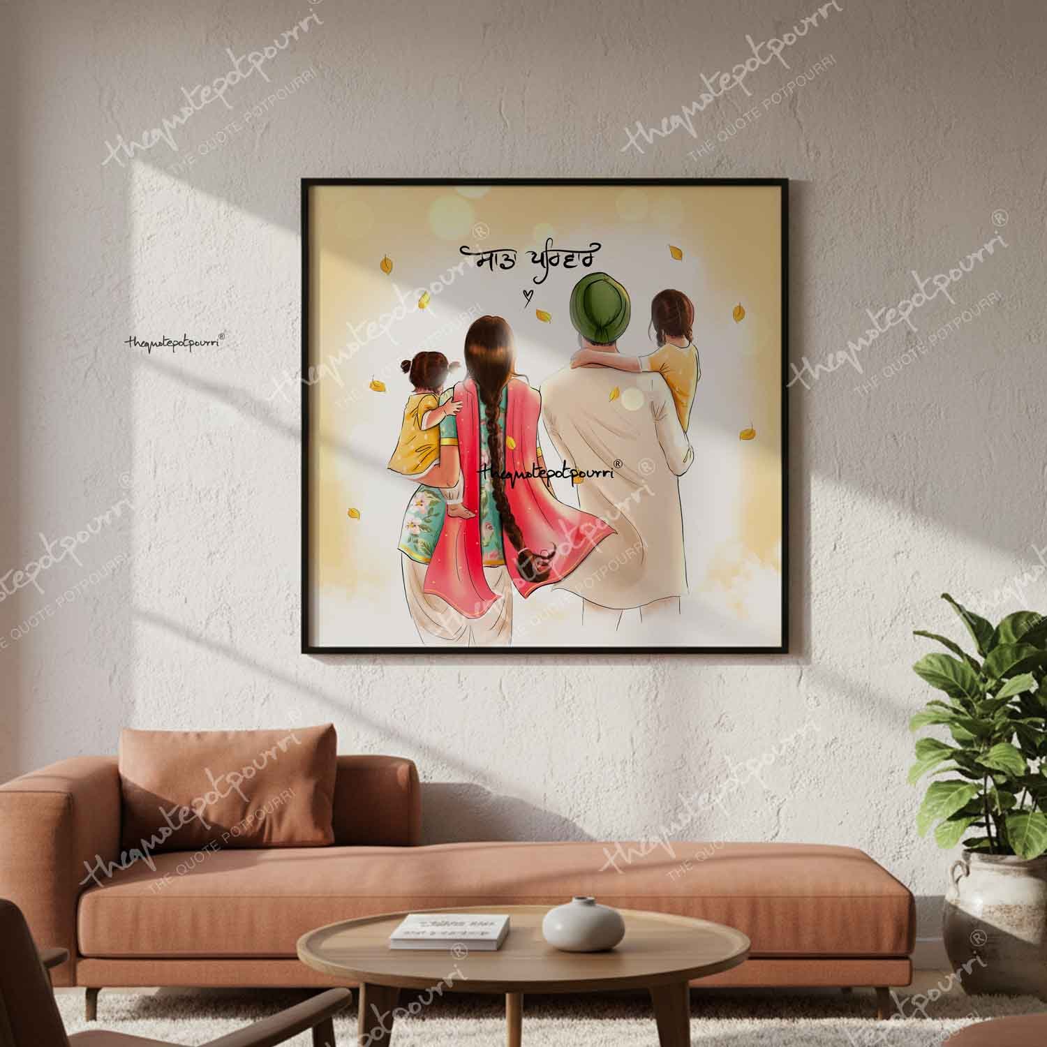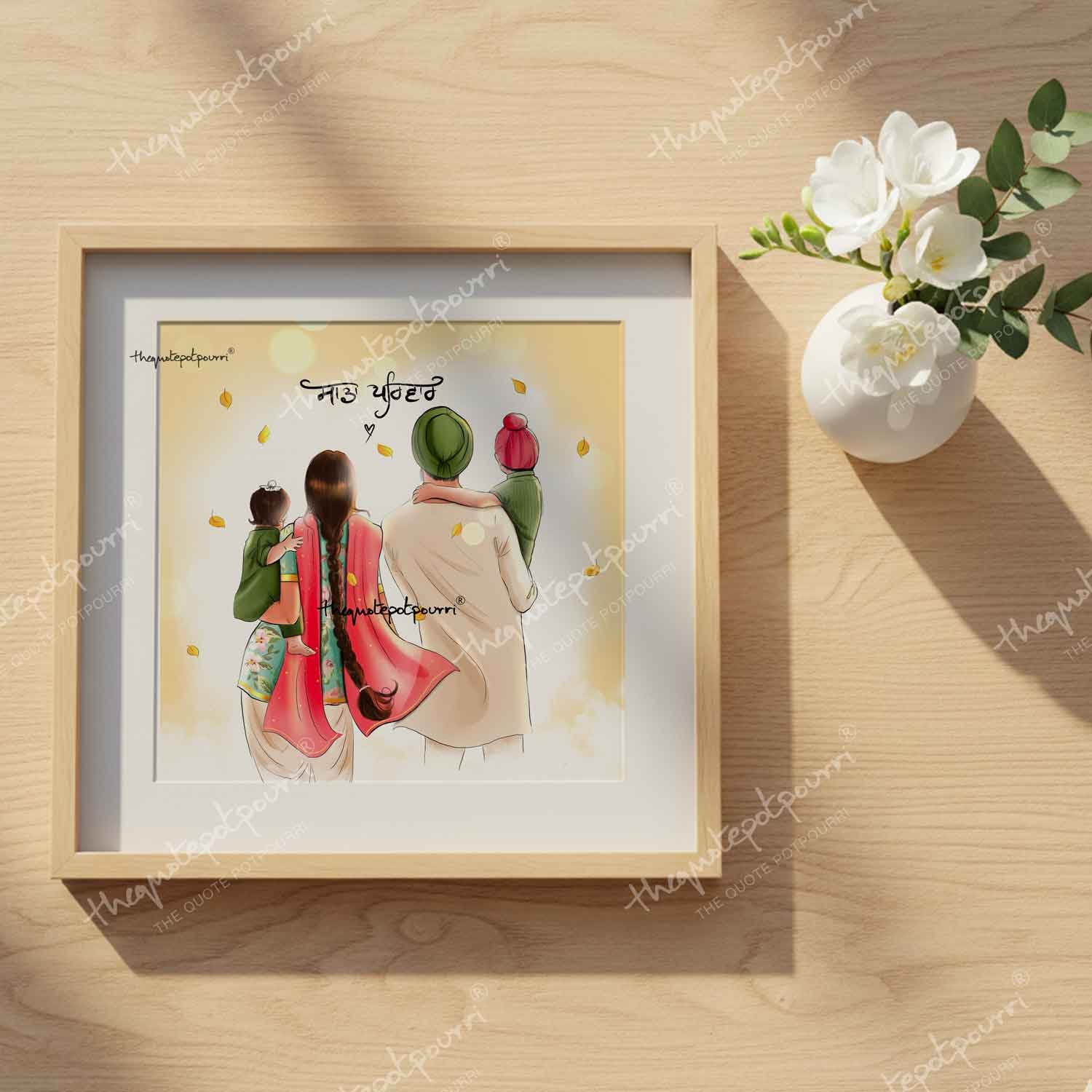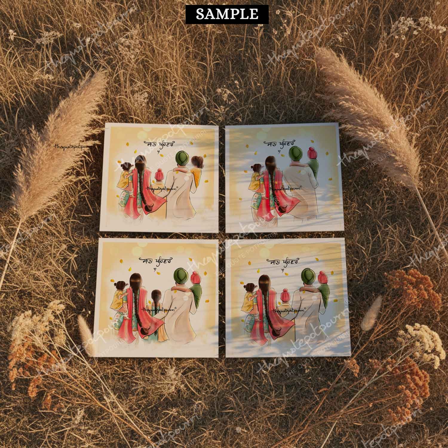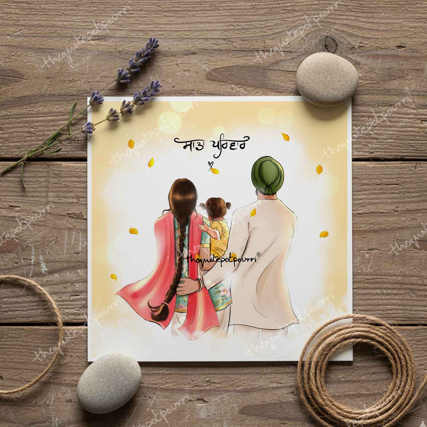 Sada Parivar | Parents and Kids Art | Sikh Family | Indian Family Art | Punjabi Family | Unique Gifts | Punjabi Art | Sikh Art