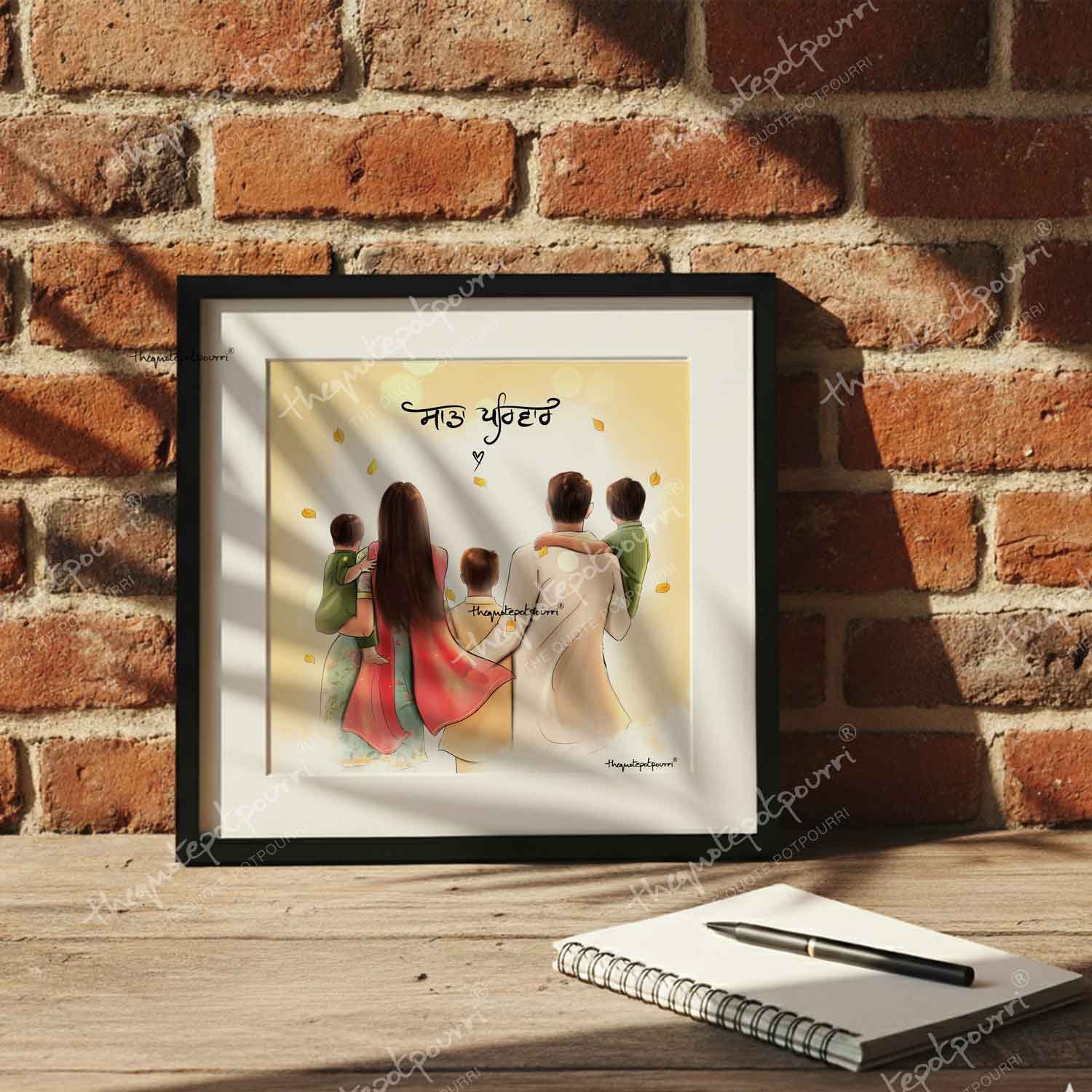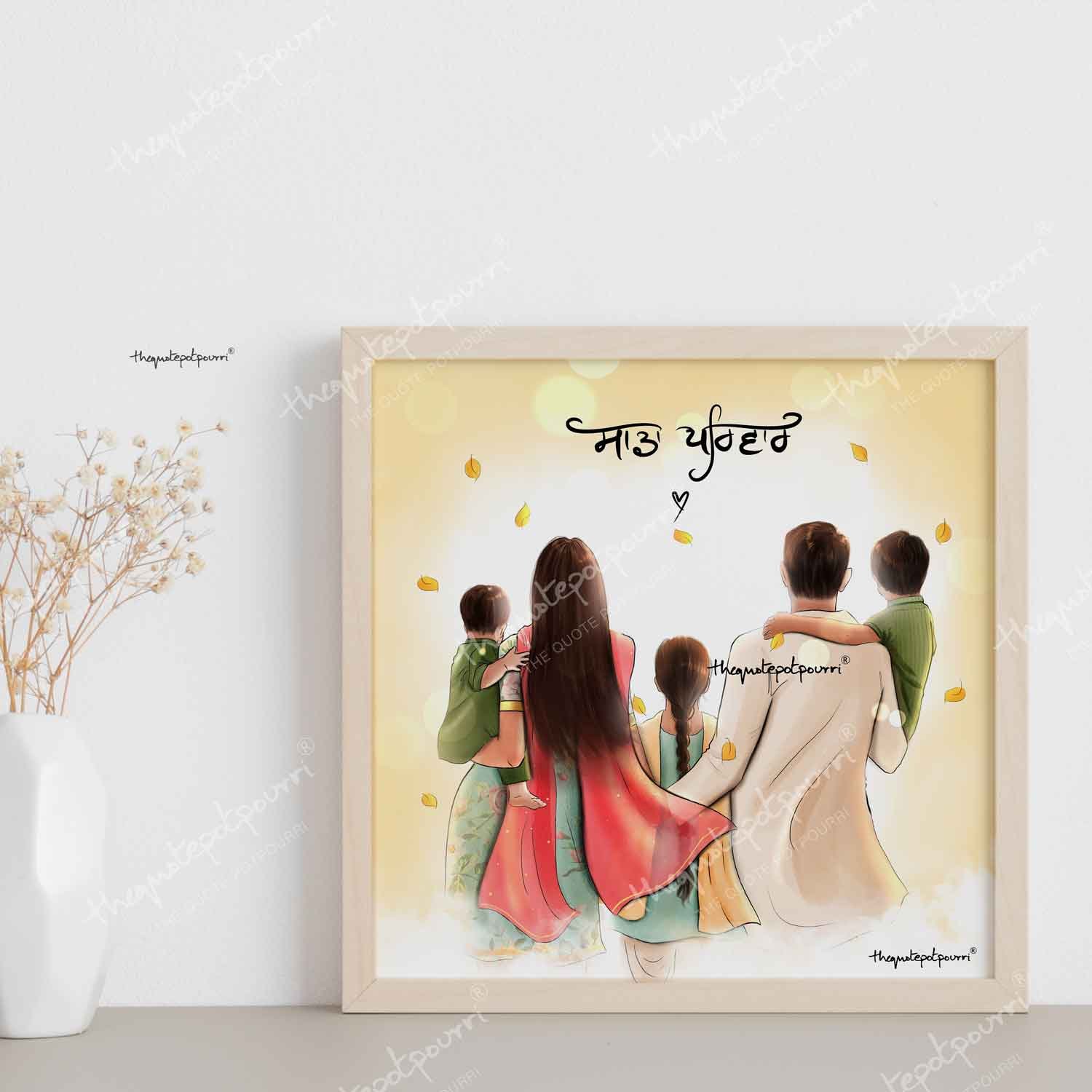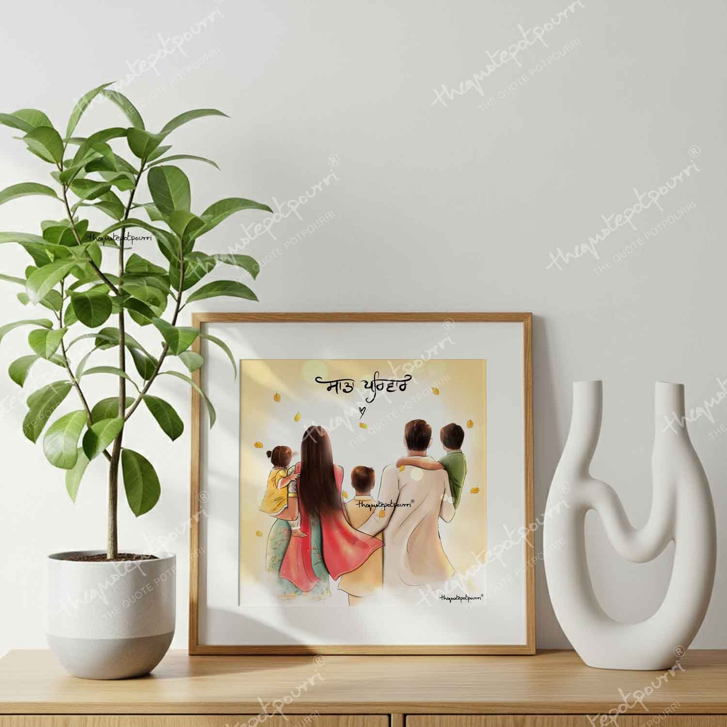 Sada Parivar (Without Turban Version) | Parents and Kids Art | Sikh Family | Punjabi Family | Unique Gifts | Punjabi Art | Sikh Art