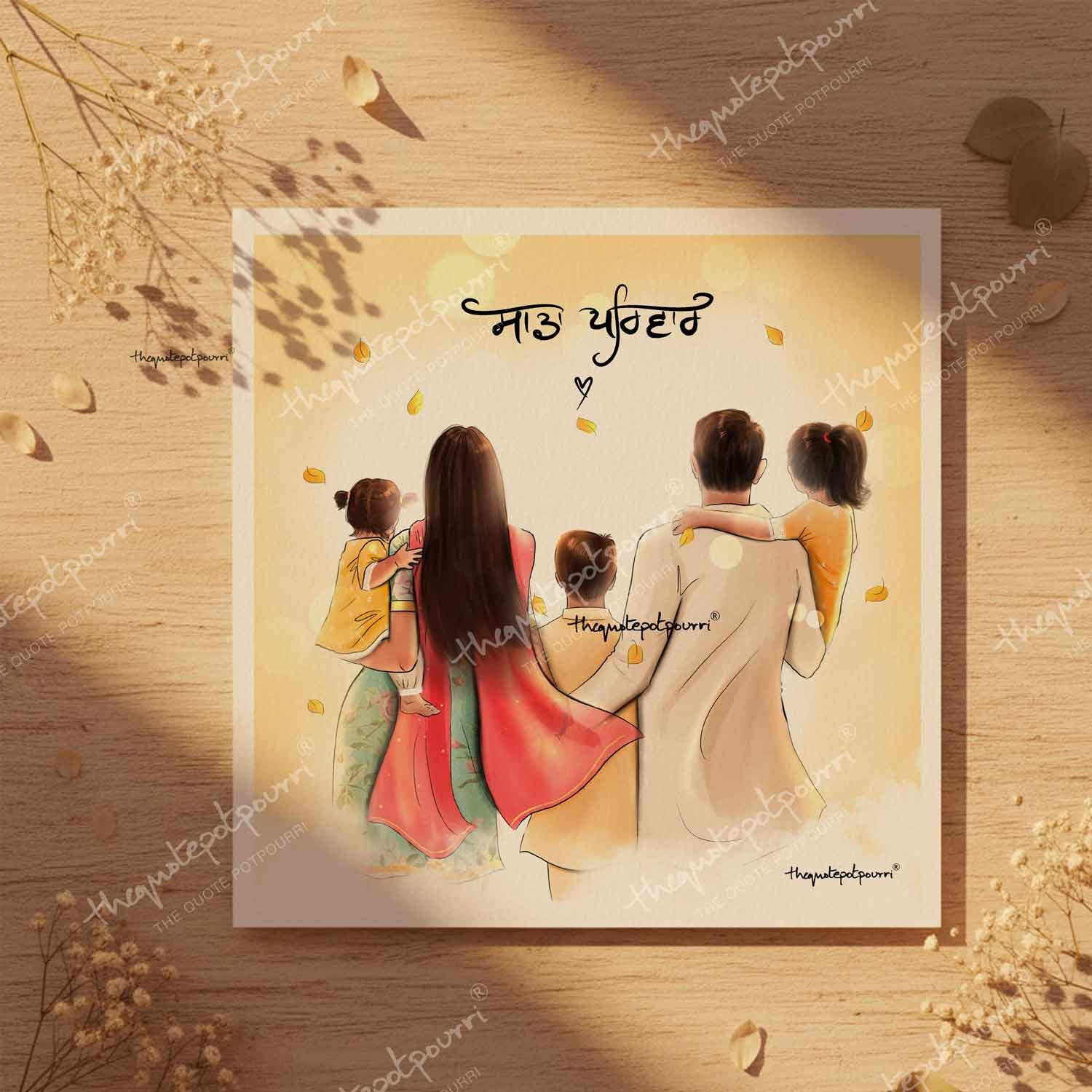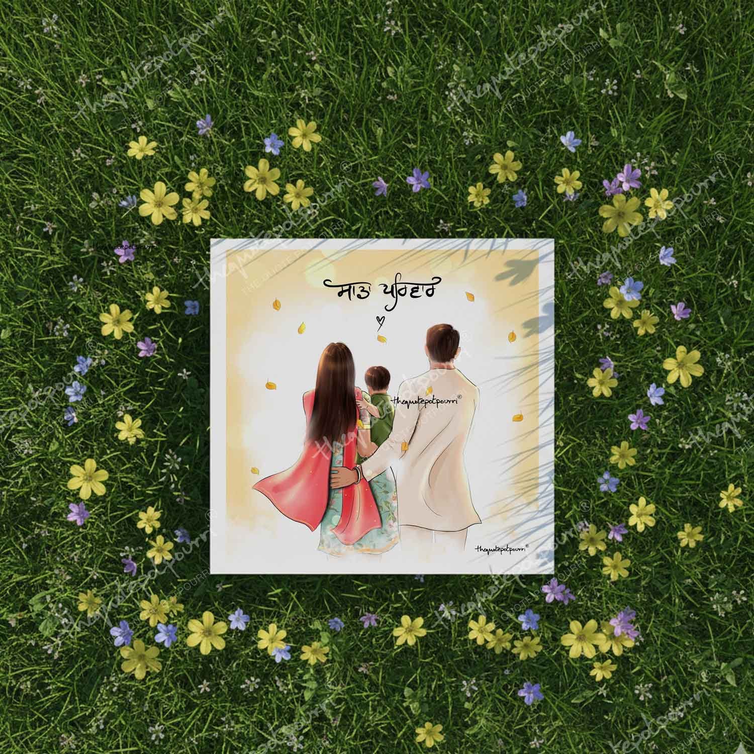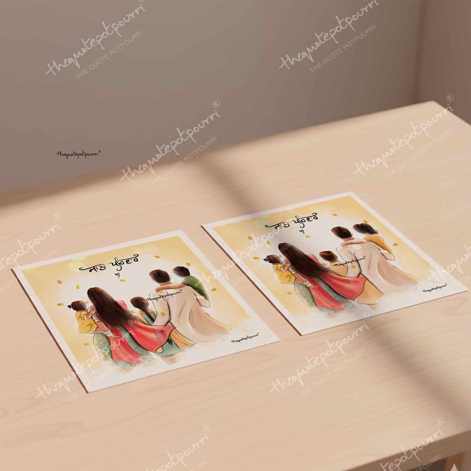 Sada Parivar (Without Turban Version) | Parents and Kids Art | Sikh Family | Punjabi Family | Unique Gifts | Punjabi Art | Sikh Art
