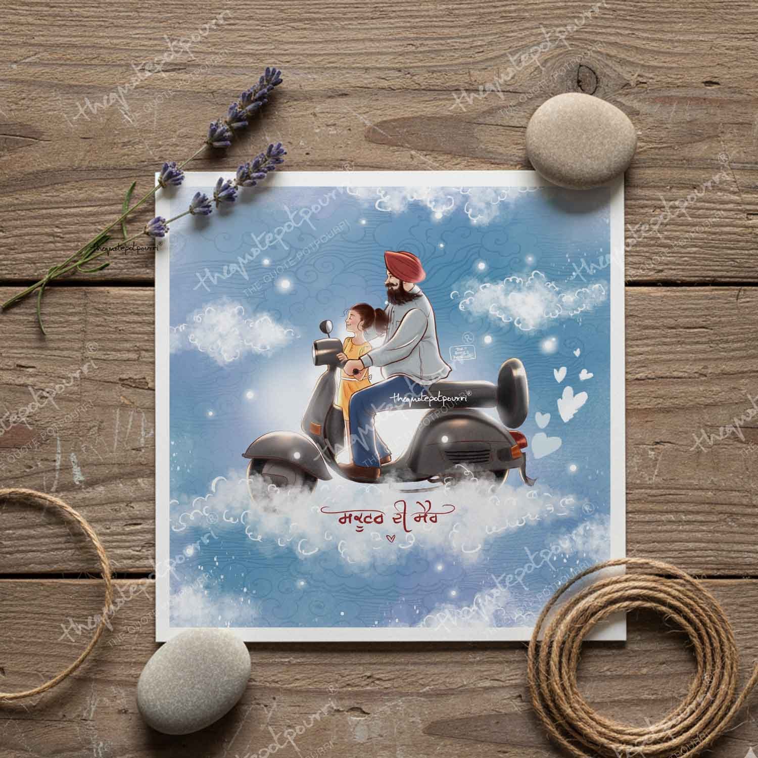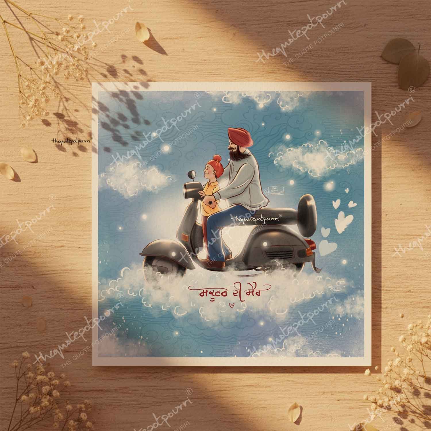 Scooter Di Sair | Sikh Dad and Child on Scooter | Punjabi Art | Turban Dad with Kids Art | Sikh Art | Punjabi Family | Gifts for Dad