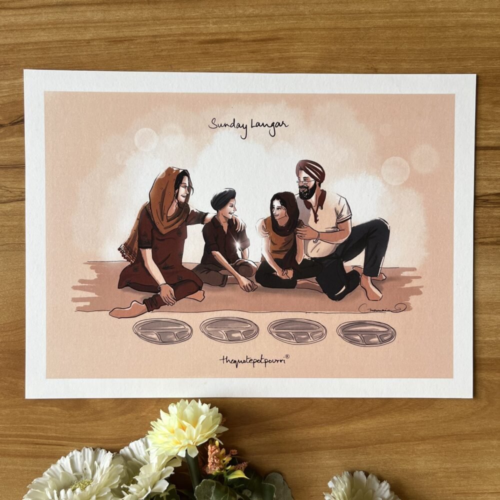 Sunday Langar | Sikh Art | Sikh Family art print | Indian Home Décor | Punjabi gifts | Nostalgic gifts | Digital Print Sale