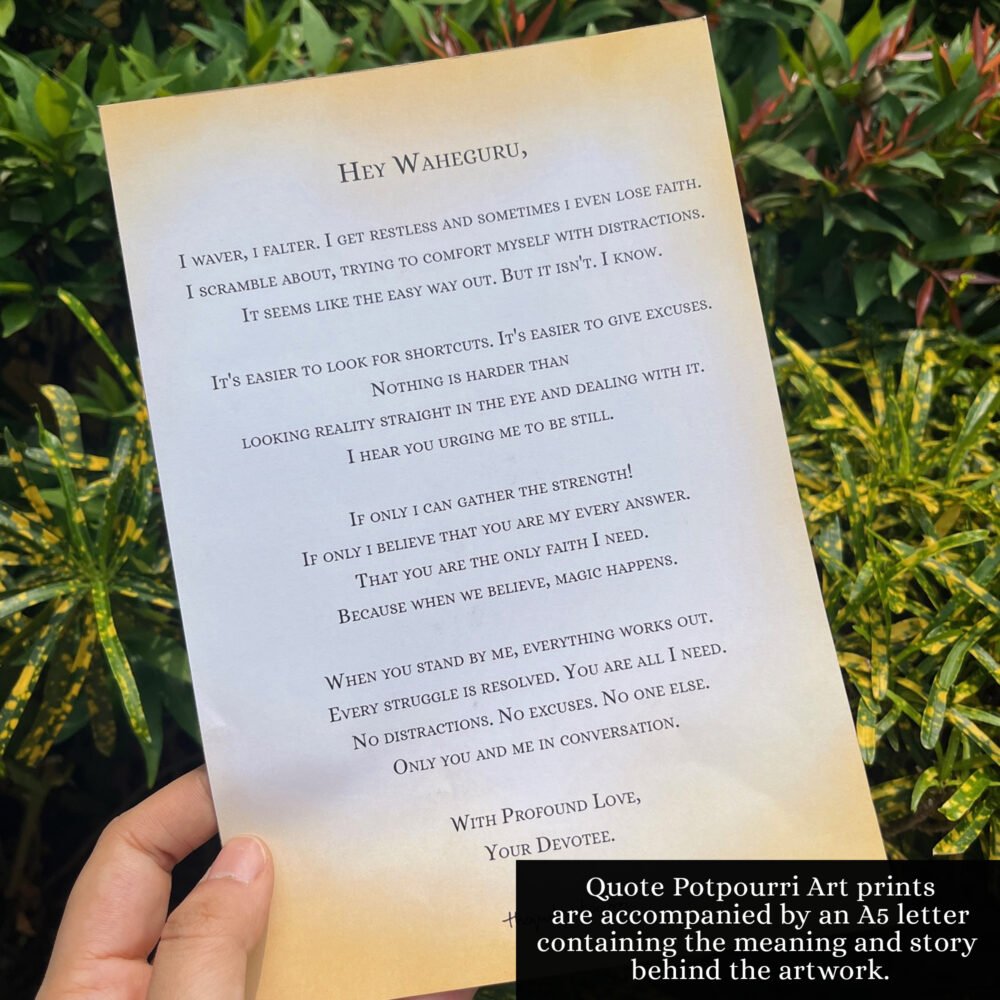 This collection was created in the hope that Sikhs will proudly display visually striking Gurbani Shabad in their homes and encourage the practice of celebrating The Guru’s words.